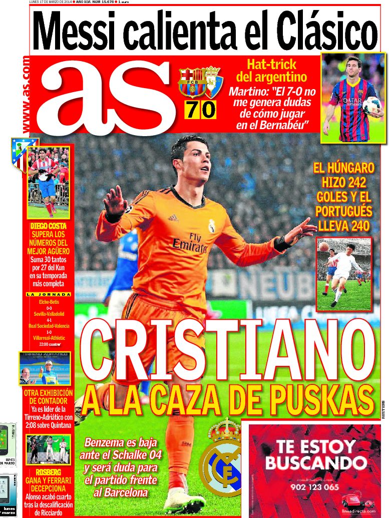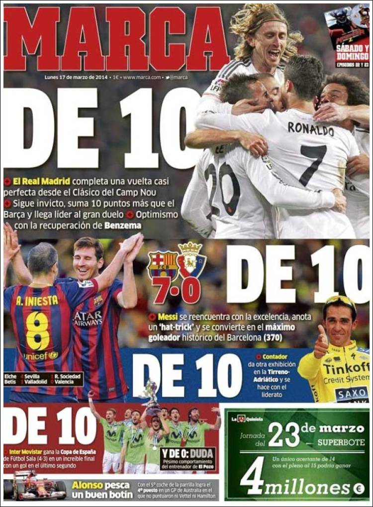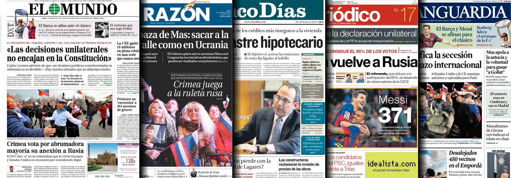 Portadas de los diarios El Mundo, El País, ABC, La Razón, La Vanguardia, El Periódico, Cinco Días, El Economista, Expansión, Marca, As, Mundo Deportivo y Sport.