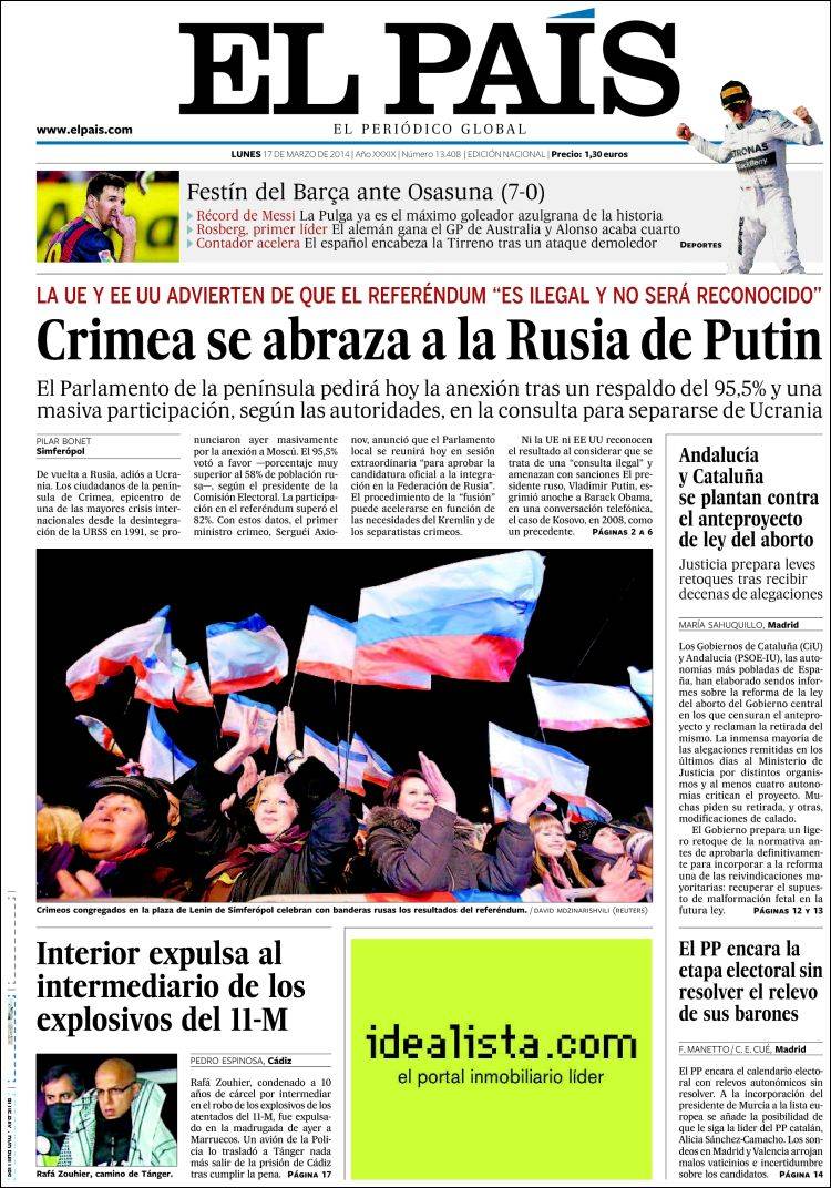 "La UE y EE.UU. aíslan a Putin tras la farsa de Crimea"