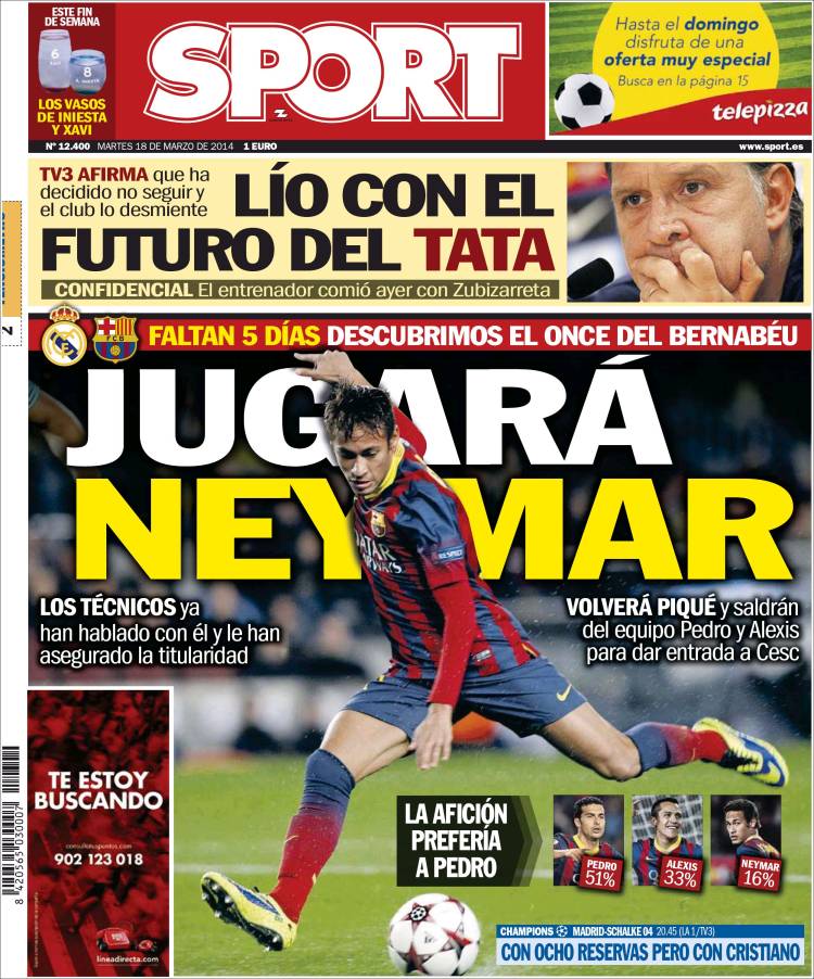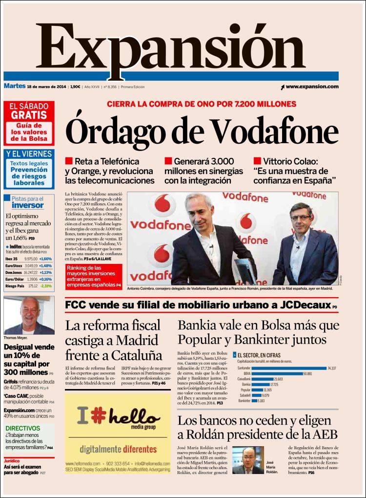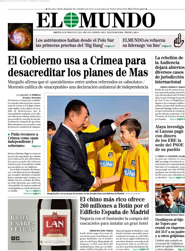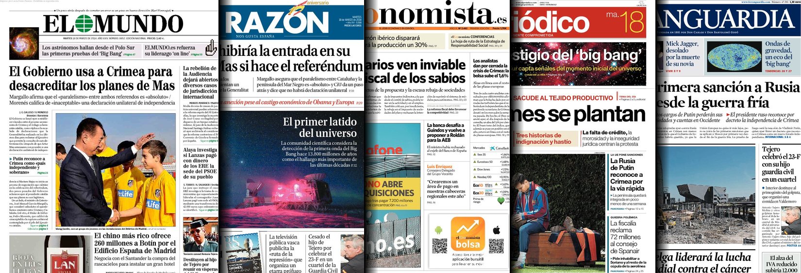 Portadas de los diarios El Mundo, El País, ABC, La Razón, La Vanguardia, El Periódico, Cinco Días, El Economista, Expansión, Marca, As, Mundo Deportivo y Sport.