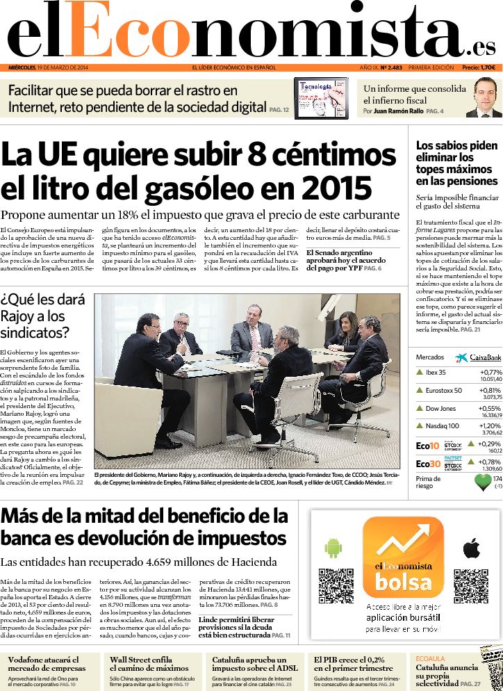 "La UE quiere subir 8 céntimos el litro de gasóleo en 2015"