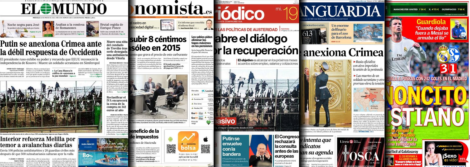 Portadas de los diarios El Mundo, El País, La Razón, La Vanguardia, El Periódico, Cinco Días, El Economista, As y Mundo Deportivo.