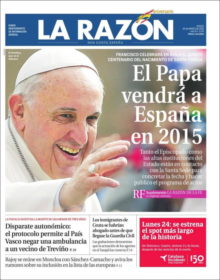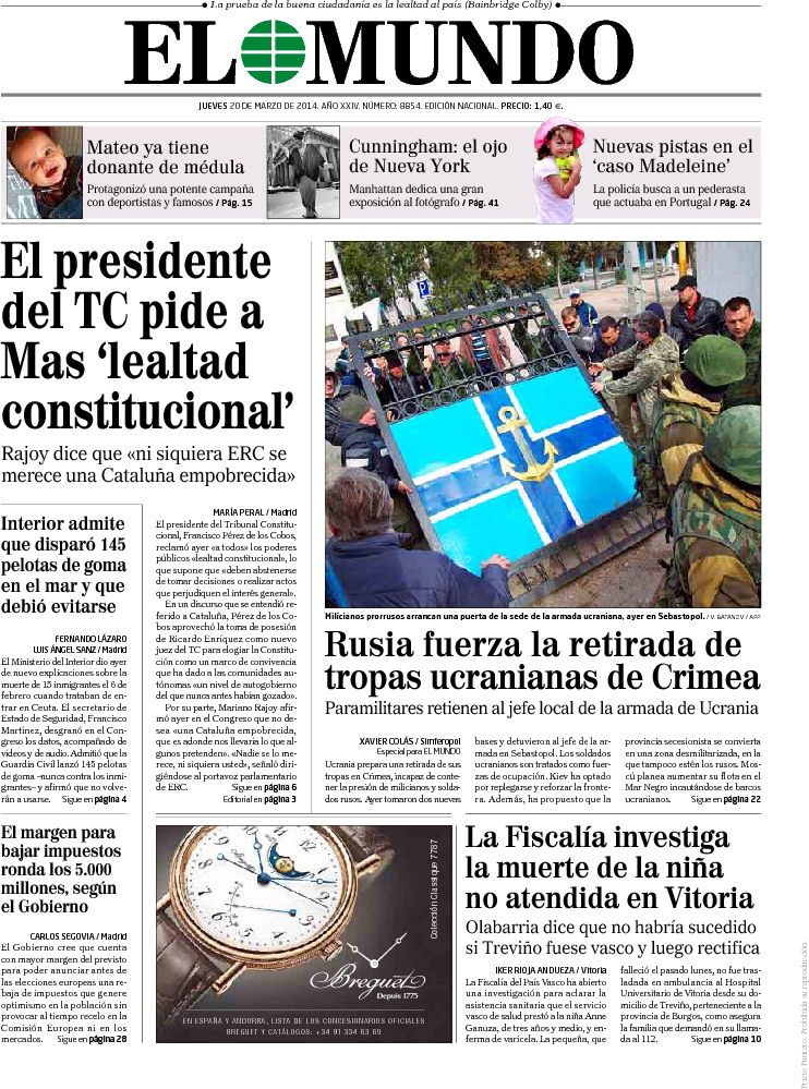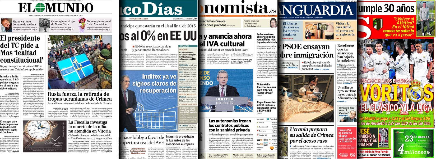 Portadas de los diarios El Mundo, El País, ABC, La Razón, La Vanguardia, El Periódico, Cinco Días, El Economista, Expansión, Marca, As, Mundo Deportivo y Sport.
