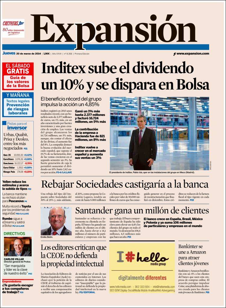 "Inditex sube el dividendo un 10% y se dispara en Bolsa"