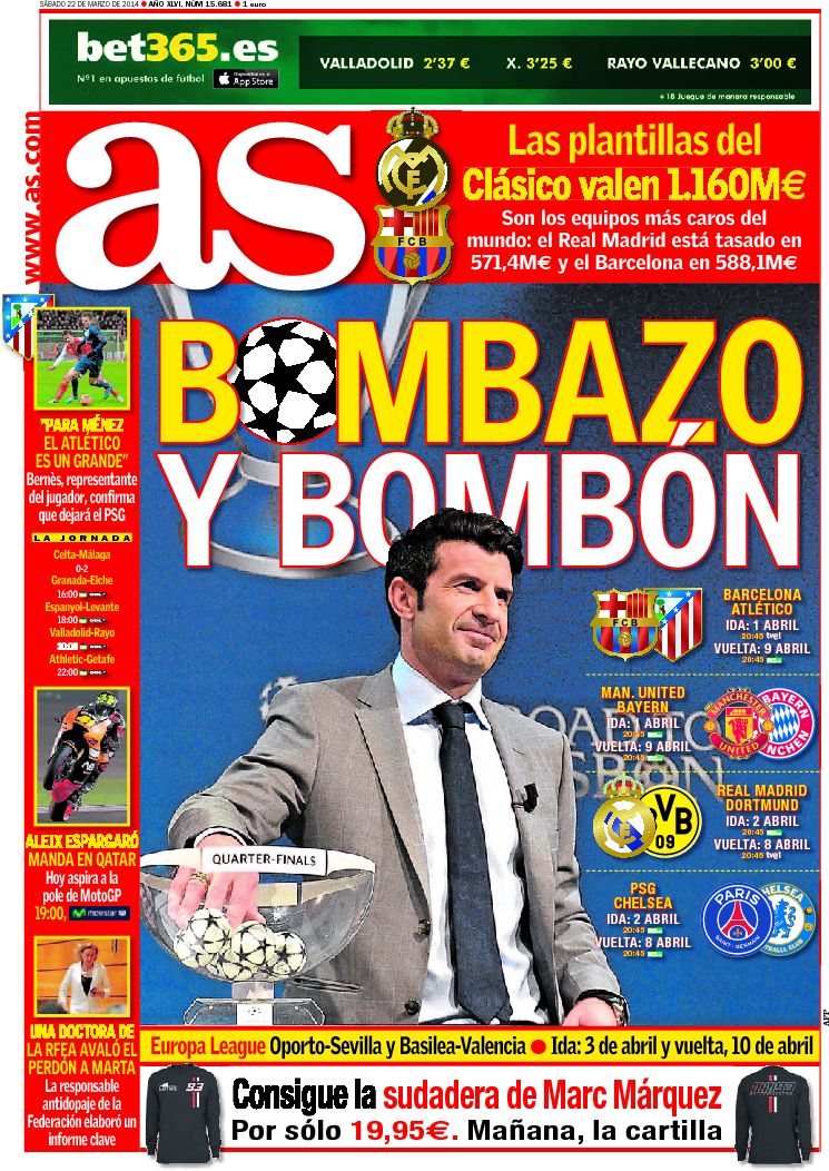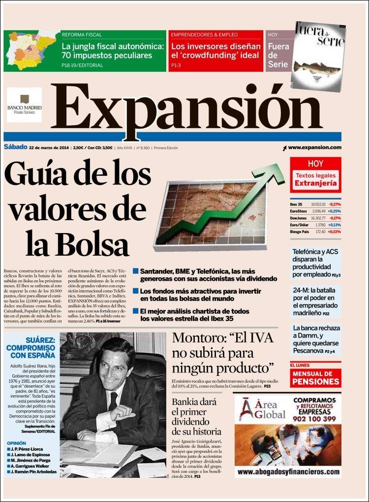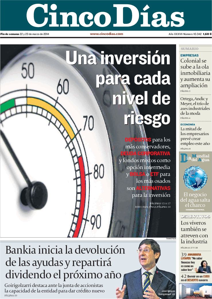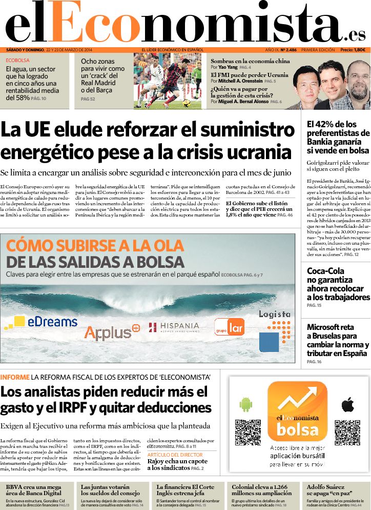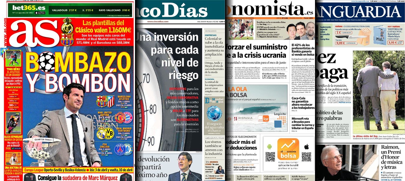 Portadas de los diarios ABC, As, Cinco Días, El Economista y La Vanguardia.