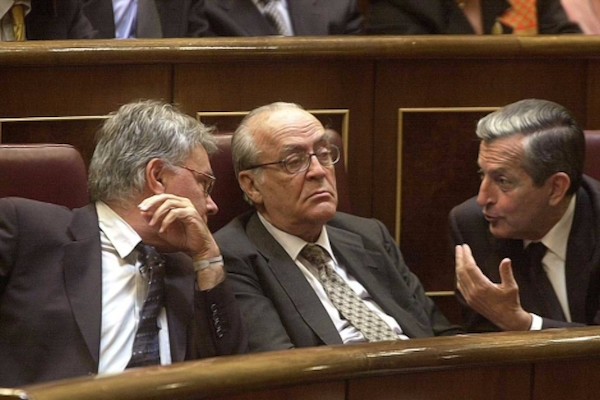 Suárez, con Felipe González y Leopoldo Calvo Sotelo, en el 25 aniversario de la Transición
