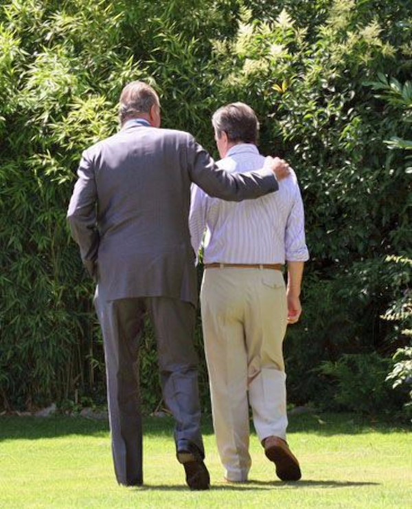 Fotografía facilitada por Adolfo Suárez Illana, tomada en Madrid el 17 de julio de 2008, del Rey Juan Carlos paseando con Suárez durante la ceremonia privada celebrada en el domicilio del político en la que los Reyes le entregaron el Collar de la Insigne Orden del Toisón de Oro