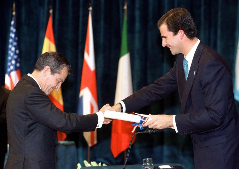 Adolfo Suárez, recibiendo el premio Príncipe de Asturias de la Concordia 1996 de manos del heredero de la corona española.