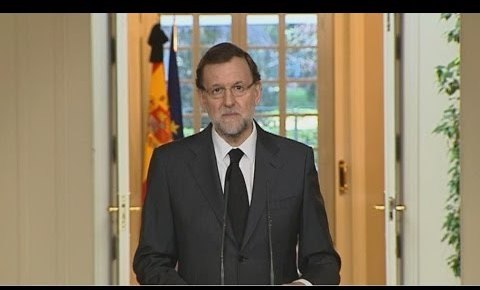 "Nos ha dejado uno de los grandes hombres de nuestra época", el primer presidente de la democracia. Con un crespón en la bandera, vestido de negro riguroso y en la sala Tapices de la Moncloa -la reservada a los grandes acontecimientos-, el presidente proclamó la "pena" de la nación por el fallecimiento de Adolfo Suárez, y anunció tres días de luto oficial.