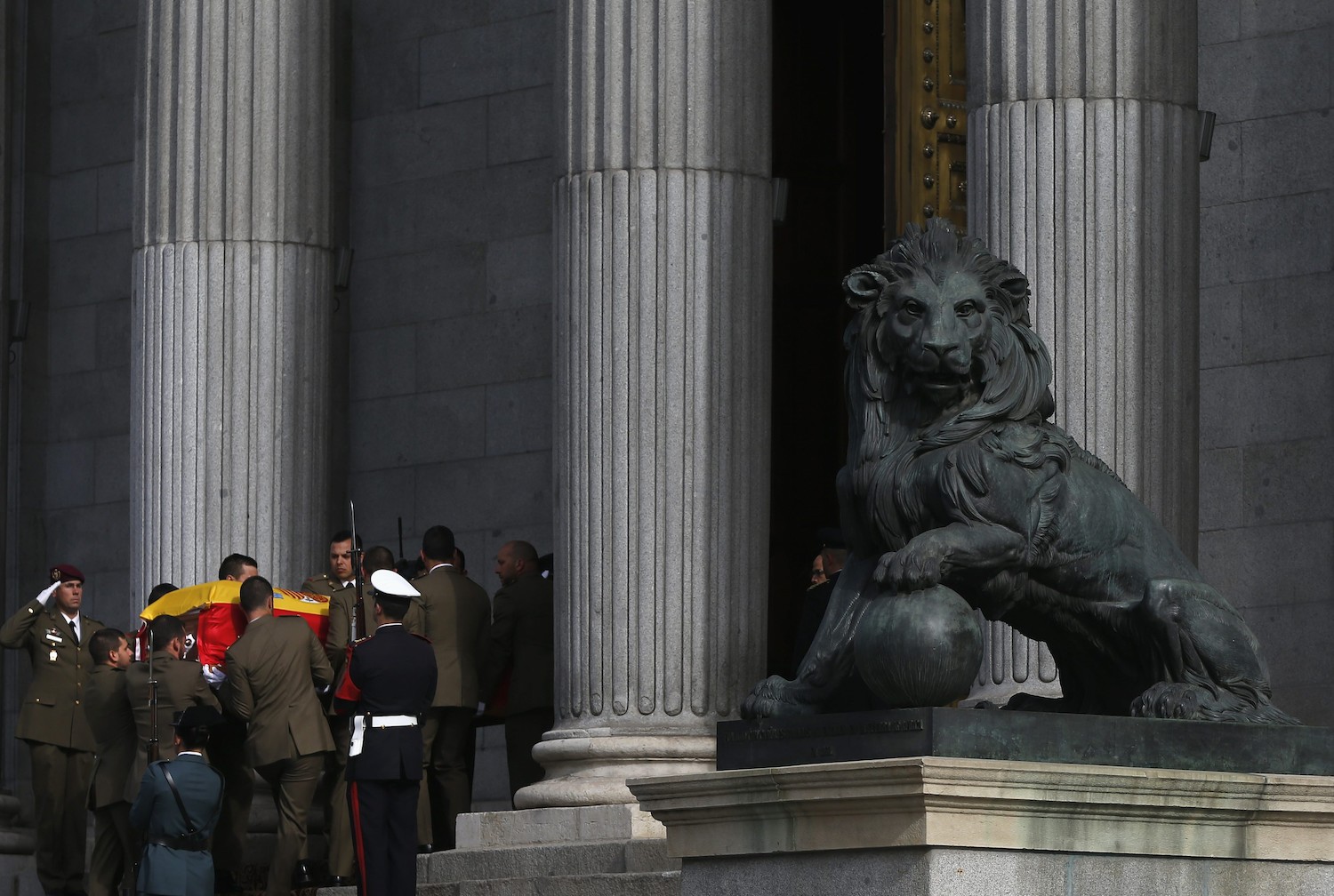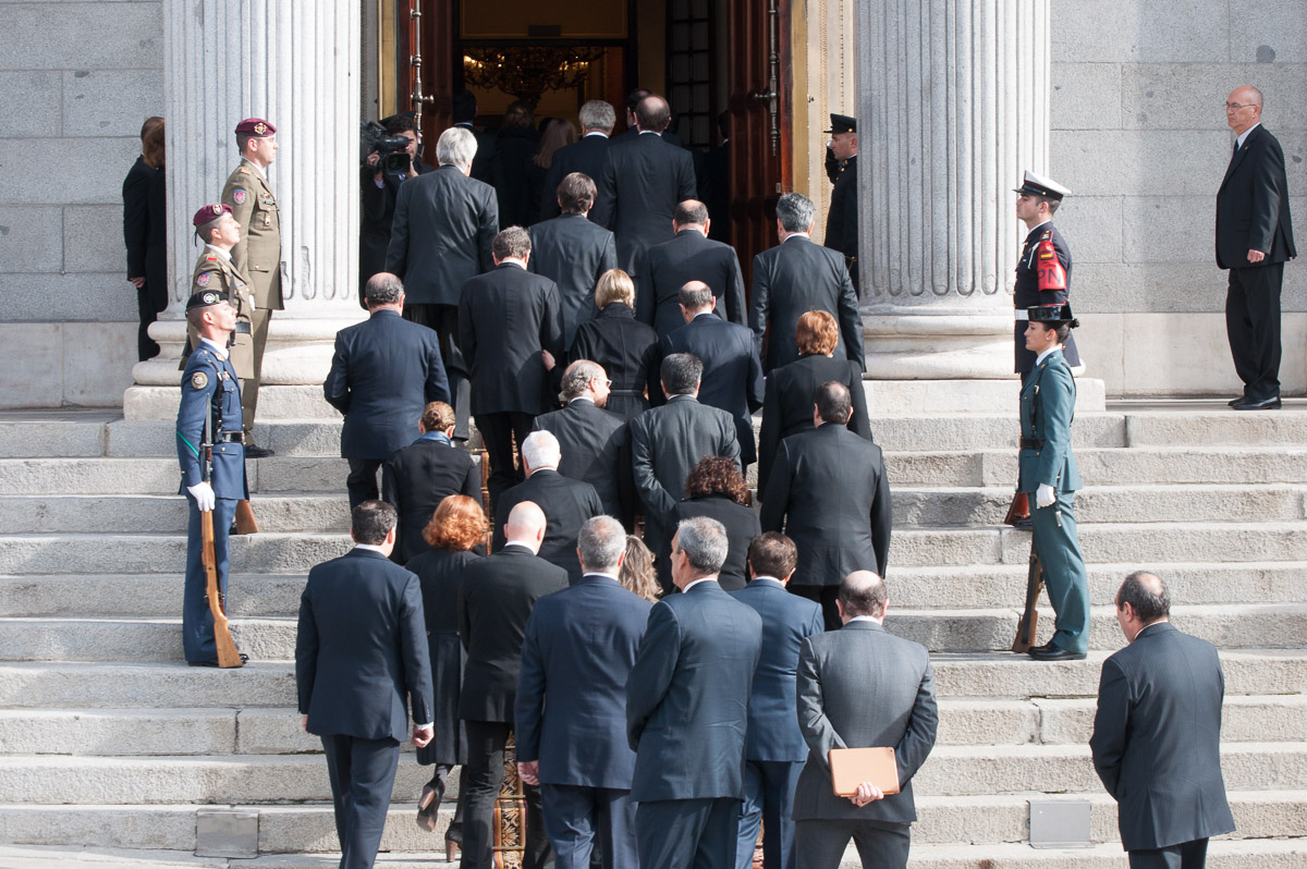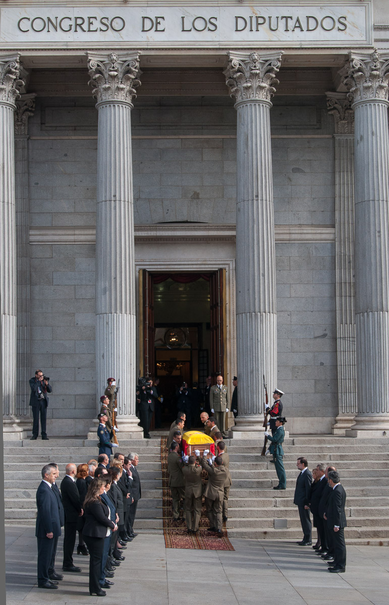 Los restos mortales de Suárez atraviesan el umbral de entrada al Congreso