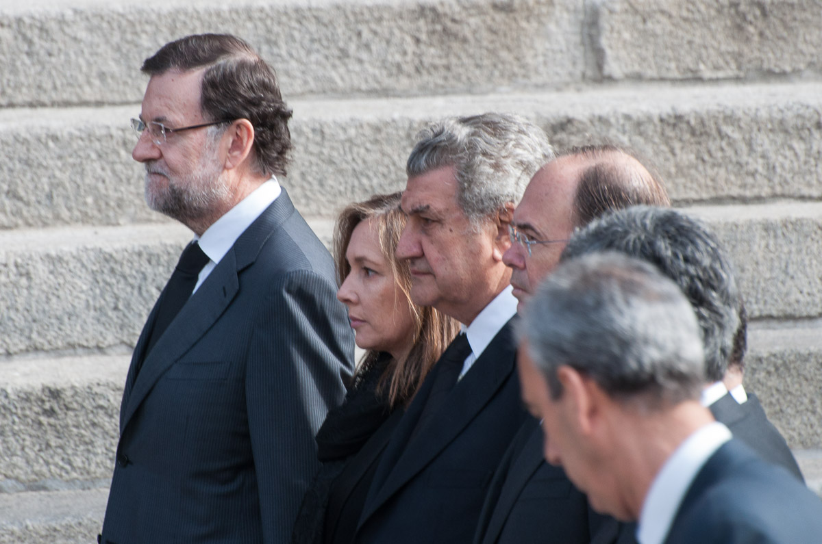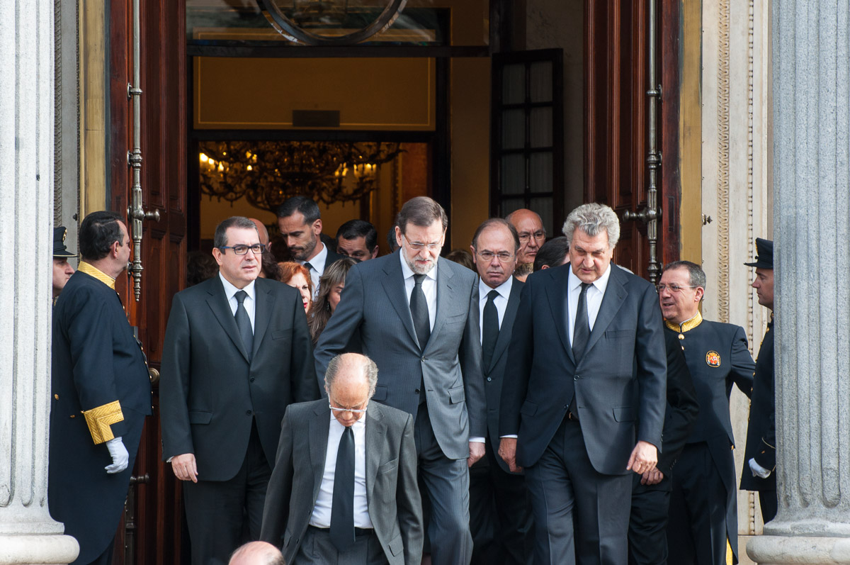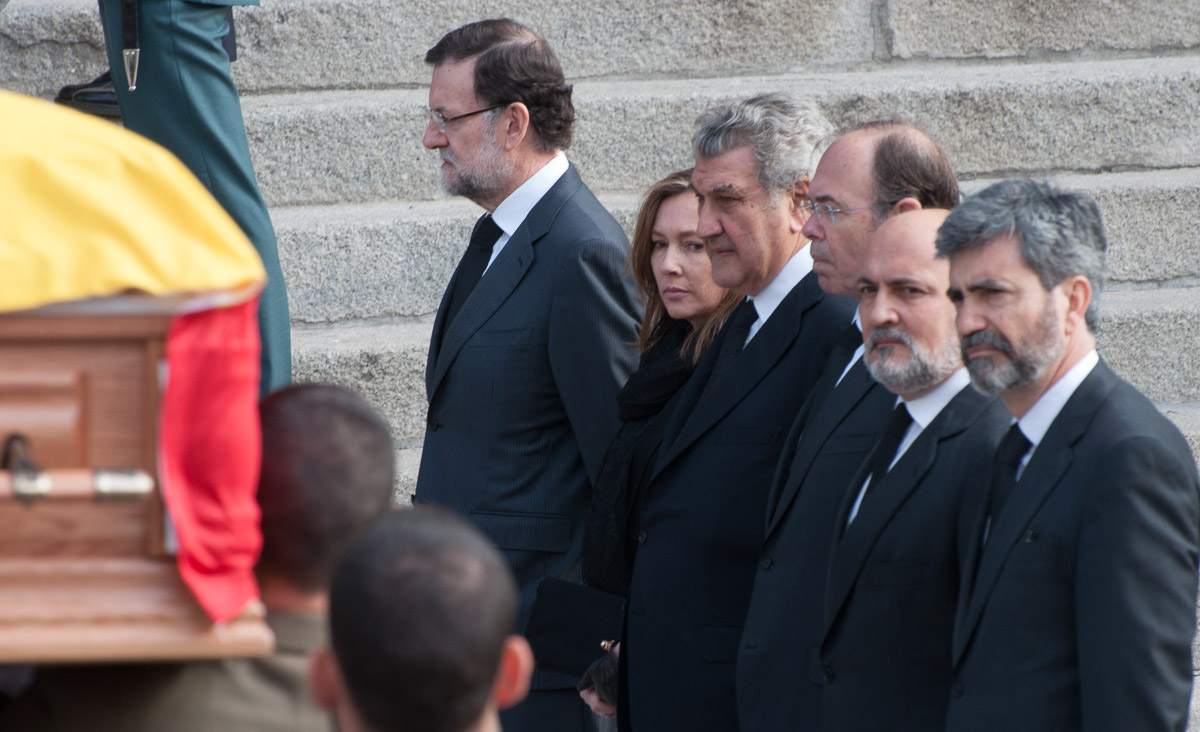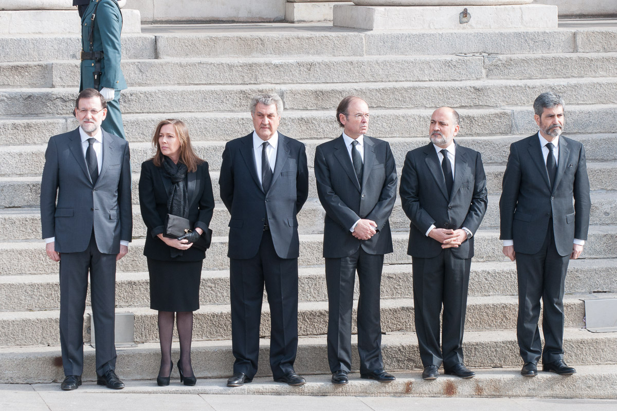 Rajoy, su mujer y los presidentes de las más altas instituciones del Estado observan el paso del cortejo fúnebre