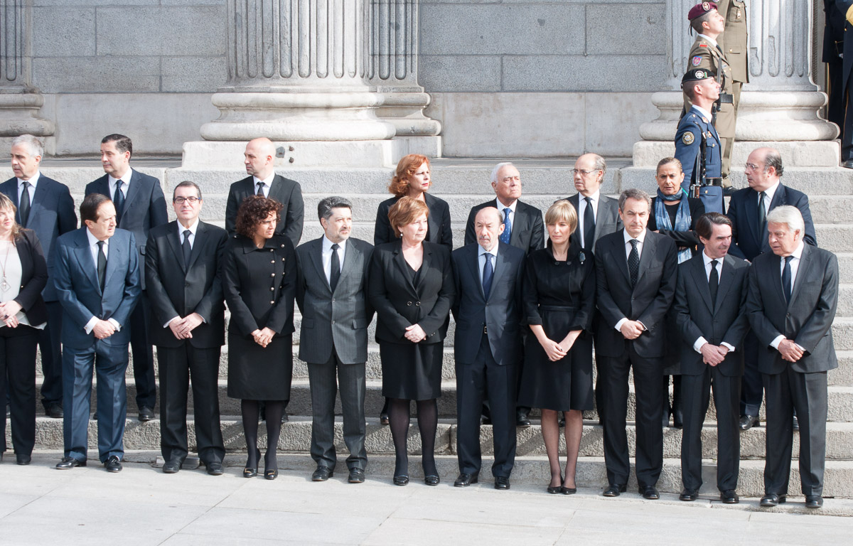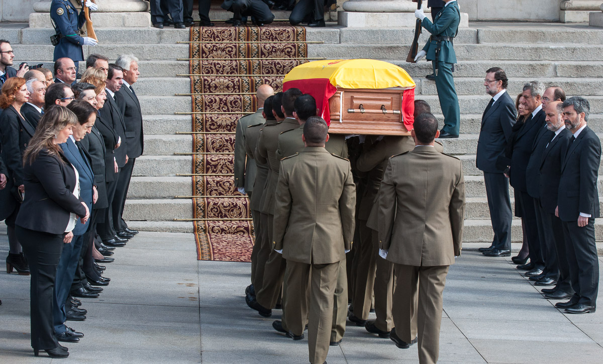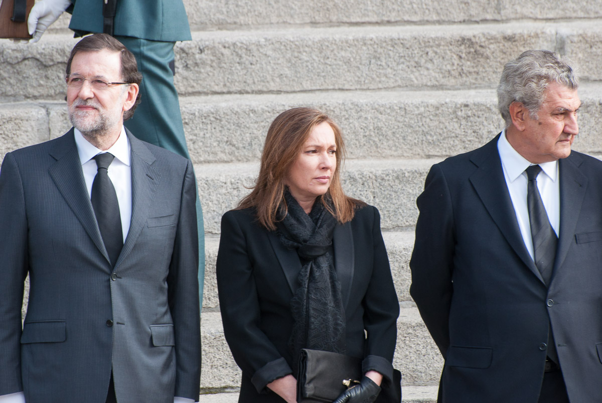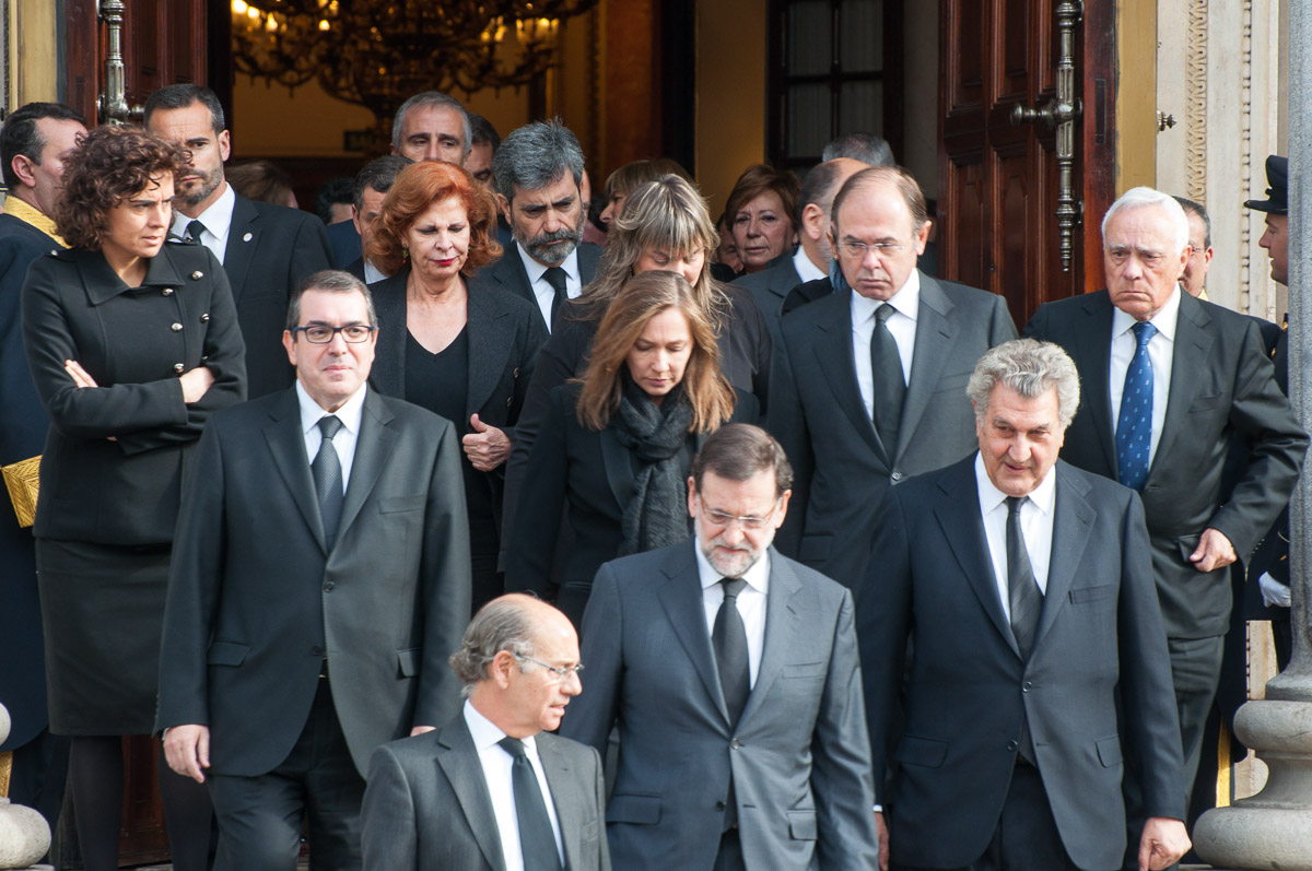 Rajoy, su mujer y los presidentes de las más altas instituciones del Estado observan el paso del cortejo fúnebre