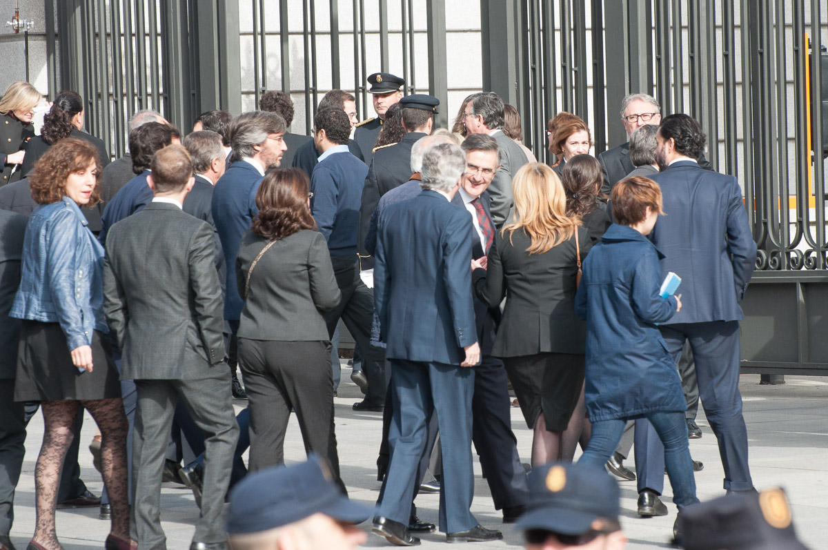 Los Príncipes a su llegada al Congreso para rendir homenaje a Adolfo Suárez. Fueron recibidos por el presidente de la Cámara Baja, Jesús Posada, y la vicepresidenta del Gobierno, Soraya Sáenz de Santamaría