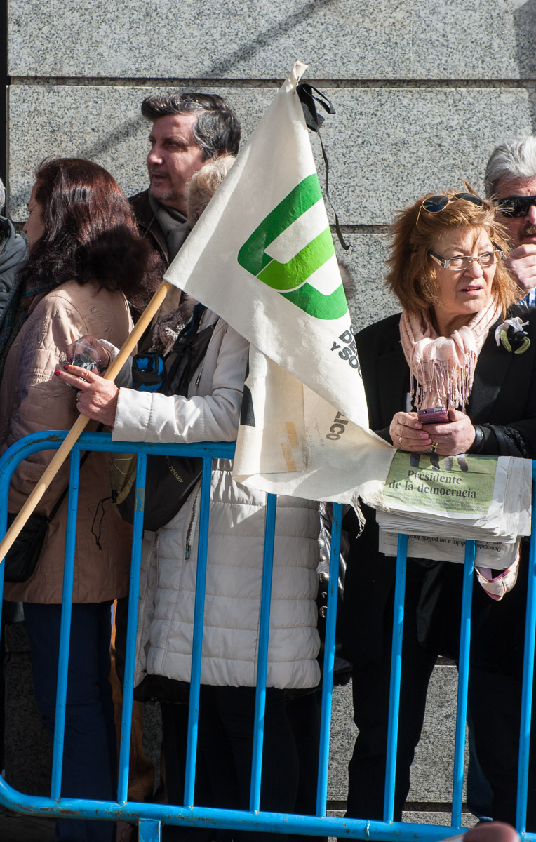 Una mujer, entre los primeros de la fila, llevaba una bandera del CDS, el partido fundado por Suárez tras dejar la presidencia del Gobierno