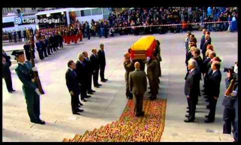 El féretro de Adolfo Suárez ya se encuentra en el Salón de los Pasos Perdidos del Congreso. En la Plaza de las Cortes hasta la Puerta de los Leones, donde le esperaban las altas instancias del estado