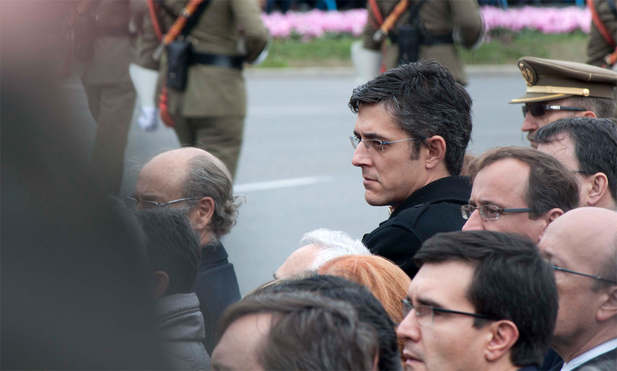 El socialista Eduardo Madina en Cibeles, en otro momento de la despedida a Adolfo Suárez en Madrid