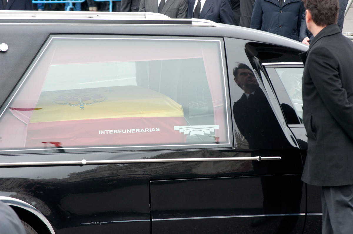 Los restos de Adolfo Suárez, ya en el coche fúnebre, preparados para su último viaje.