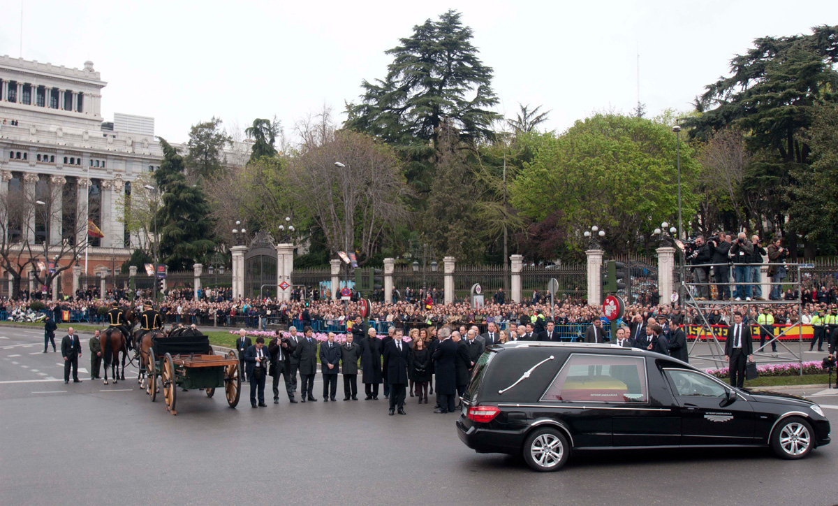 El féretro de Suárez, su familia y las autoridades, en Cibeles.