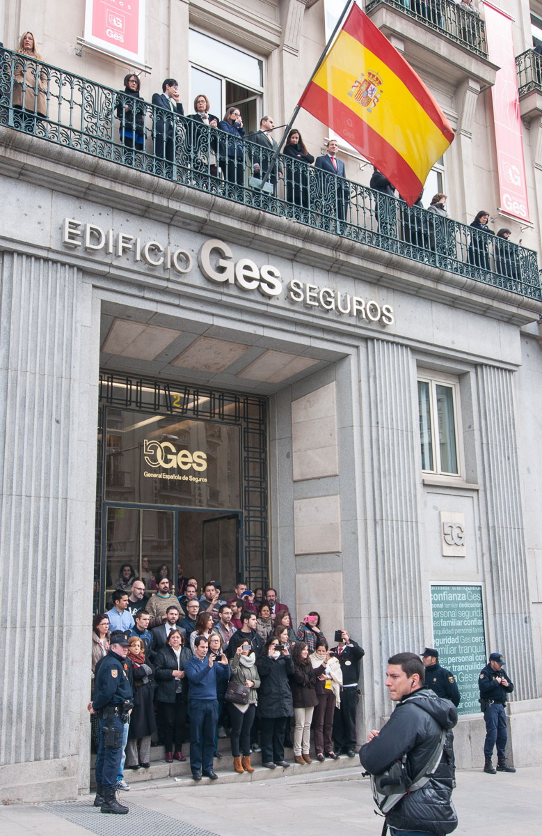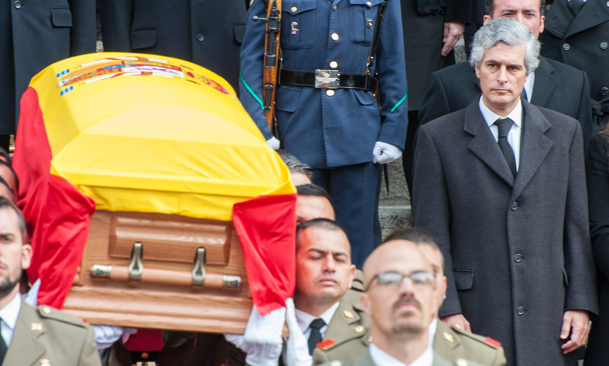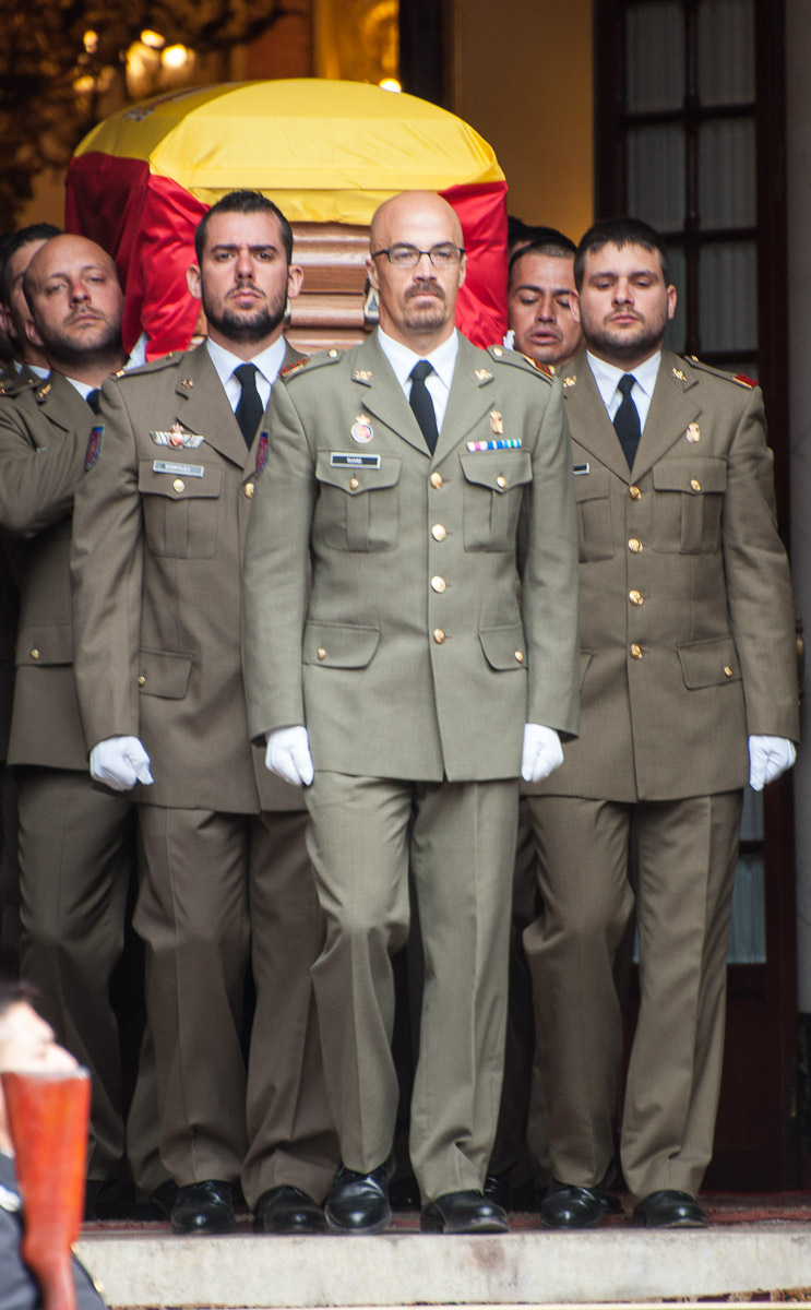 La atención de los presentes se centraba en el momento más delicado del acto, el traslado del féretro cubierto con la bandera de España.