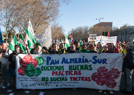 No podía faltar en una actuación de este calibre la Plataforma de Afectados por la Hipoteca que encabeza la ya famosa Ada Colau. Líder de la PAH que no sabe lo que es pagar una hipoteca, Colau decidió "en asamblea" la participación de la PAH en las manifestaciones del 22 de marzo en Madrid.