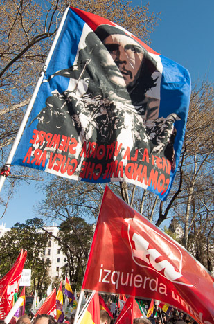El partido que capitanea Cayo Lara figura como una de las organizadoras de las marchas. Curiosamente, este mismo martes celebraba públicamente la liberación de la responsable de relaciones con los movimientos sociales y ciudadanos de la federación aragonesa del partido, Raquel Tenías, que fue detenida durante los disturbios en los que fueron violentamente agredidos y heridos cerca de 70 policías.