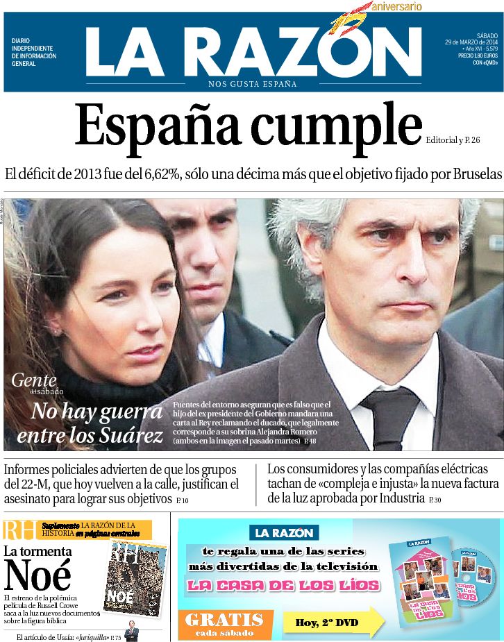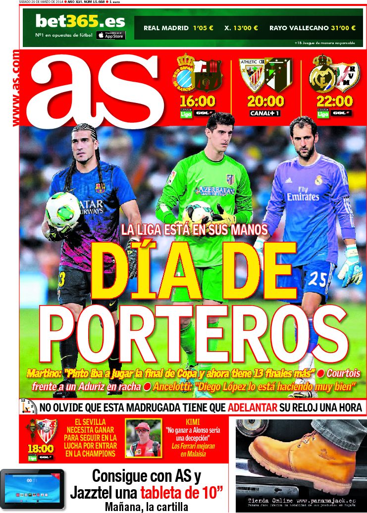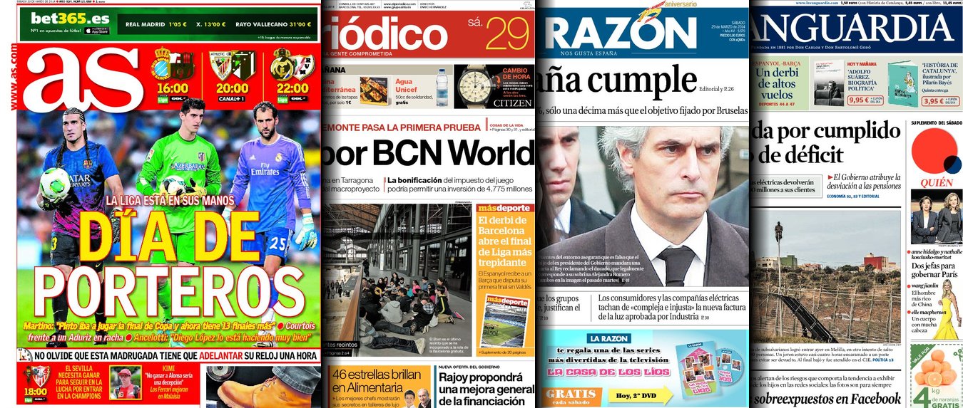 Portadas de los diarios ABC, La Razón, As, El Periódico y La Vanguardia.