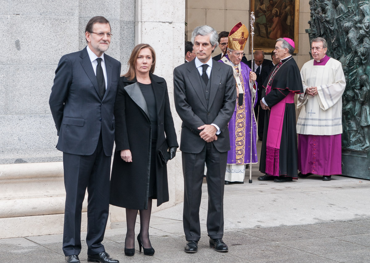 Rajoy, su mujer y Adolfo Suárez Illana, esperando la llegada de la familia real