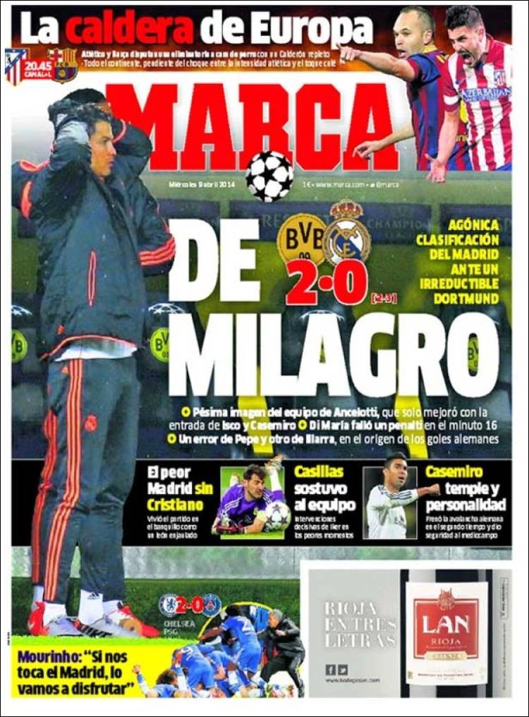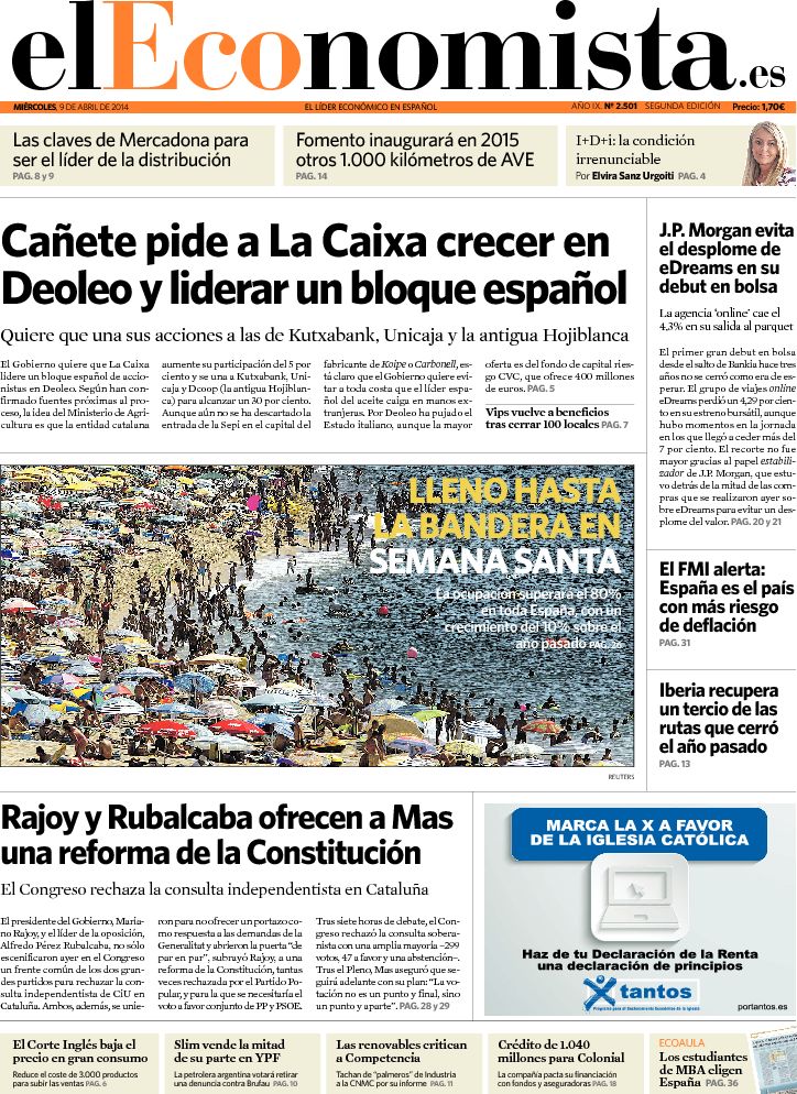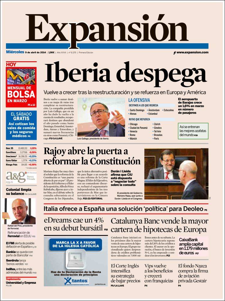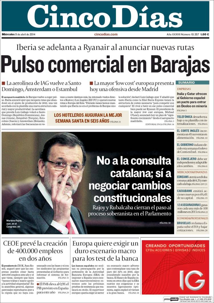 Portadas de los diarios El Mundo, El País, ABC, La Razón, La Vanguardia, El Periódico, Cinco Días, El Economista, Expansión, Marca, As, Mundo Deportivo y Sport.