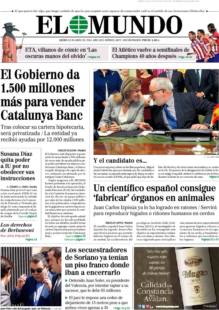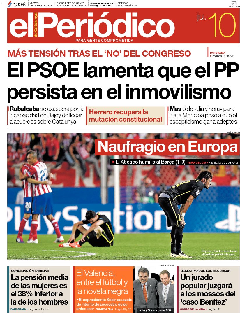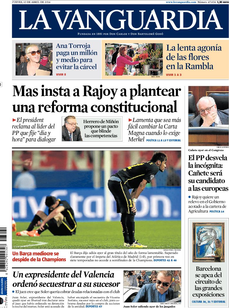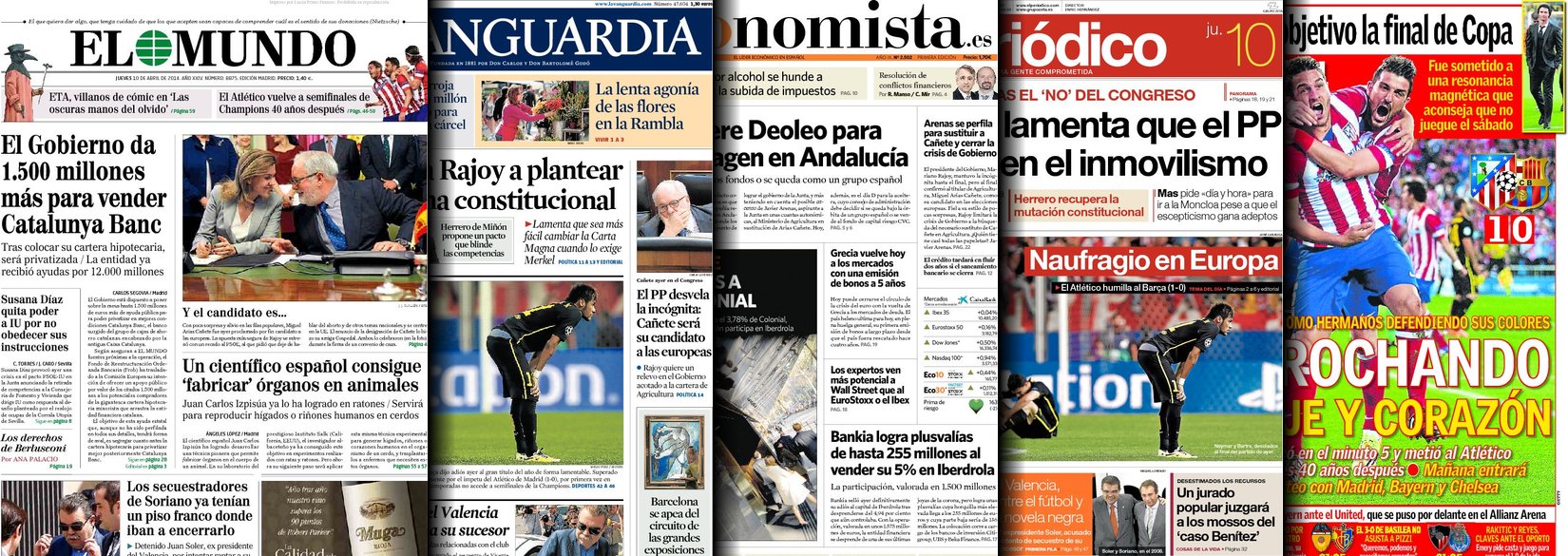 Portadas de los diarios El Mundo, El País, ABC, La Razón, La Vanguardia, El Periódico, Cinco Días, El Economista, Expansión, Marca, As, Mundo Deportivo y Sport.