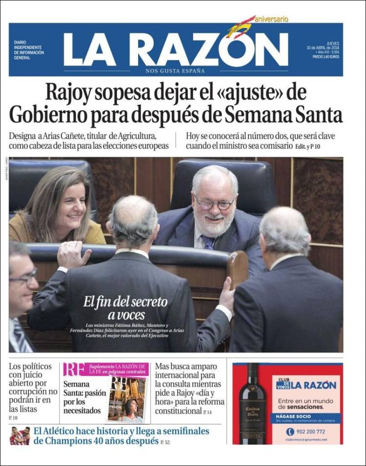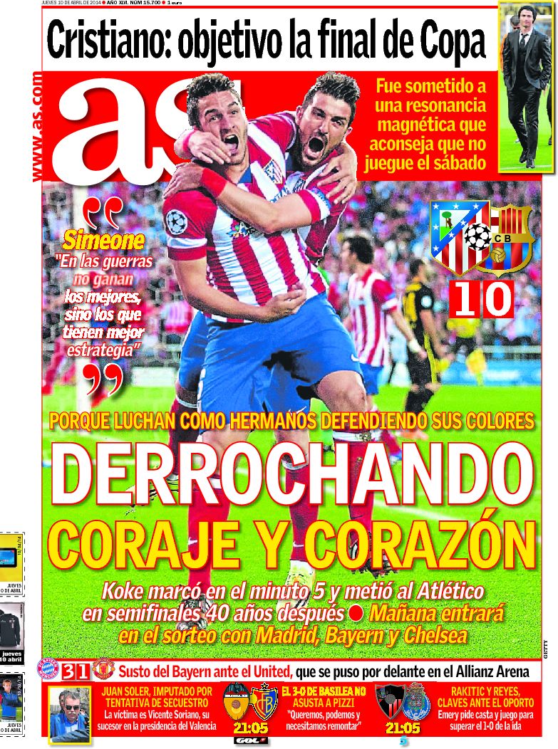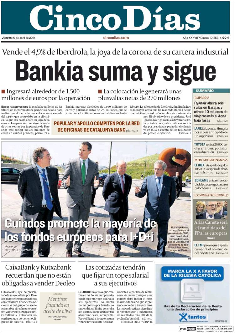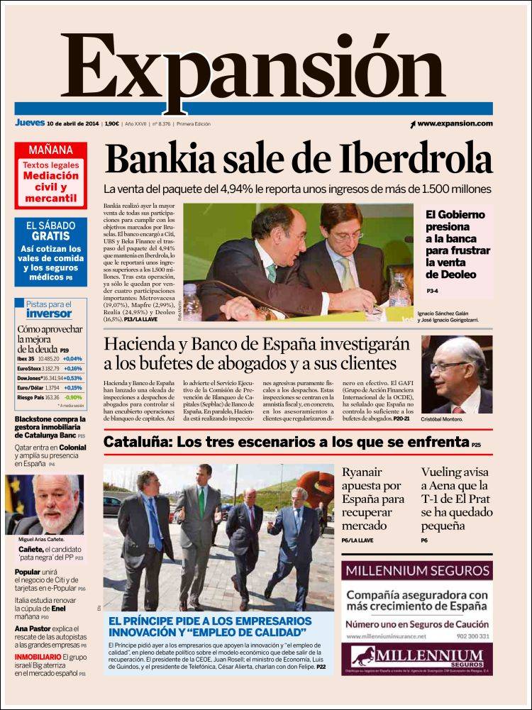 Portadas de los diarios El Mundo, El País, ABC, La Razón, La Vanguardia, El Periódico, Cinco Días, El Economista, Expansión, Marca, As, Mundo Deportivo y Sport.