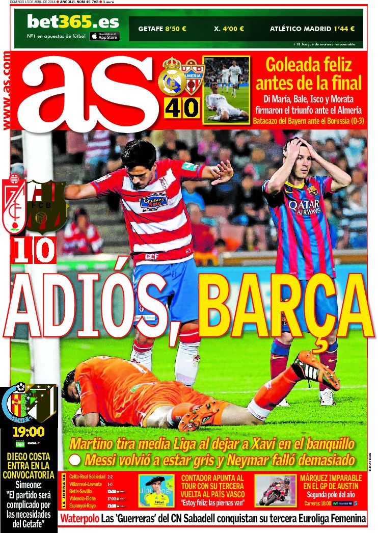 Portadas de los diarios ABC, La Razón, As y La Vanguardia.