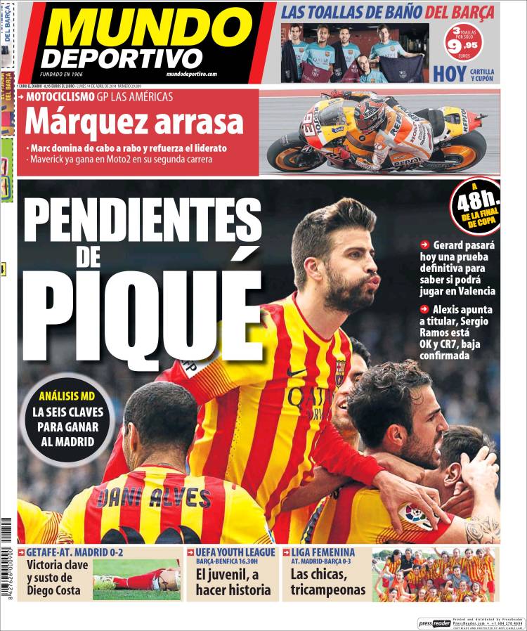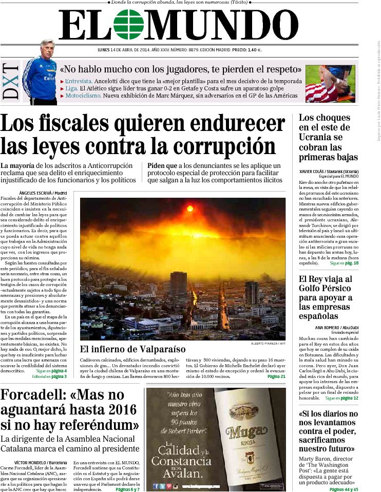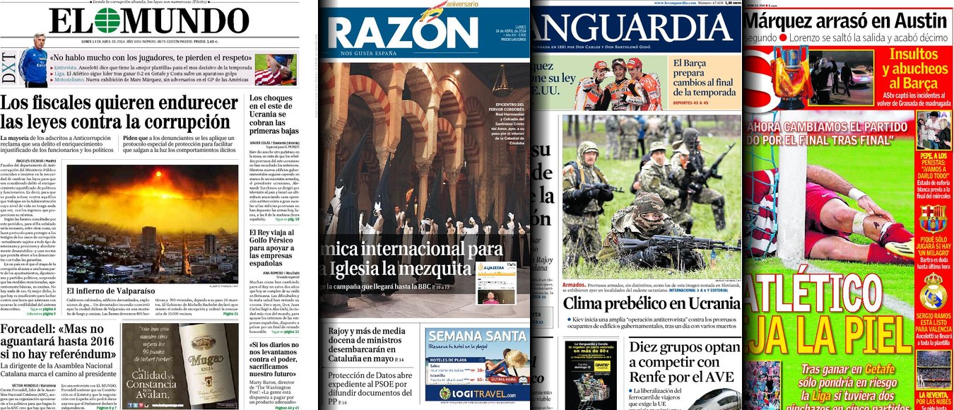 Portadas de los diarios El Mundo, El País, ABC, La Razón, La Vanguardia, El Periódico, Cinco Días, El Economista, Expansión, Marca, As, Mundo Deportivo y Sport.
