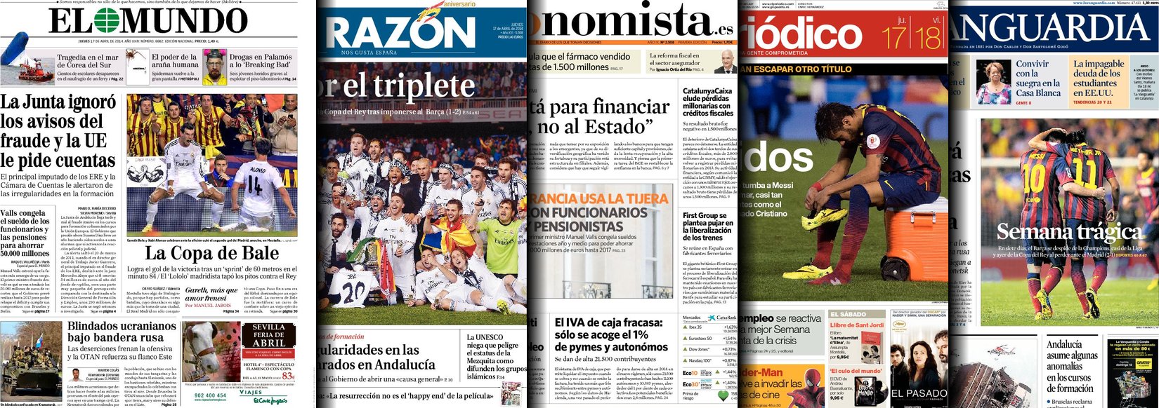 Portadas de los diarios ABC, La Razón, El Periódico, El Economista y La Vanguardia.