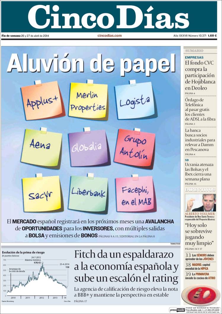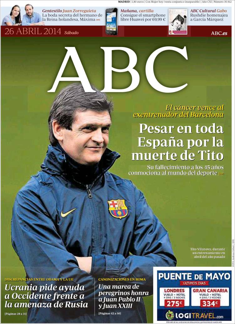 Portadas de los diarios ABC, La Razón, As, El Economista y La Vanguardia.