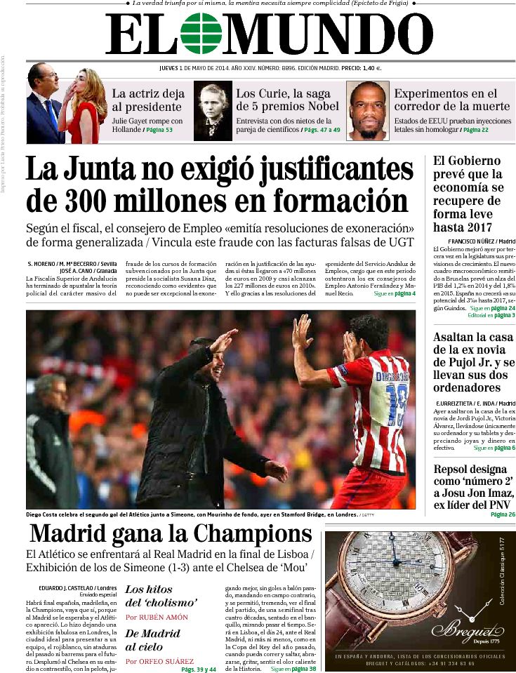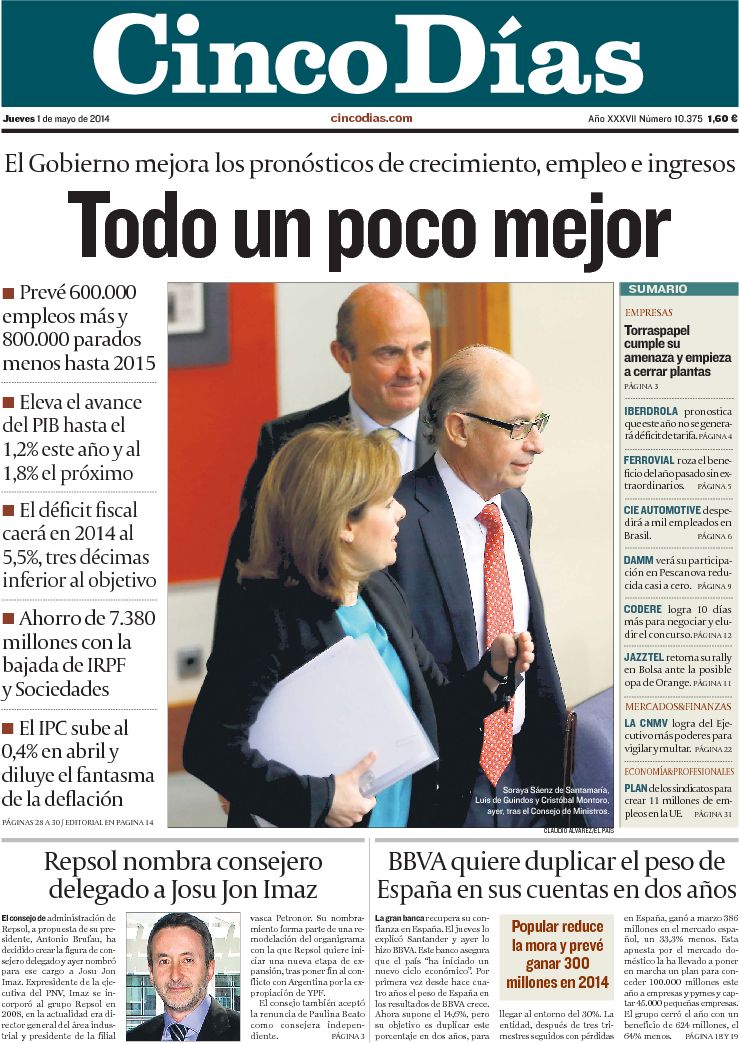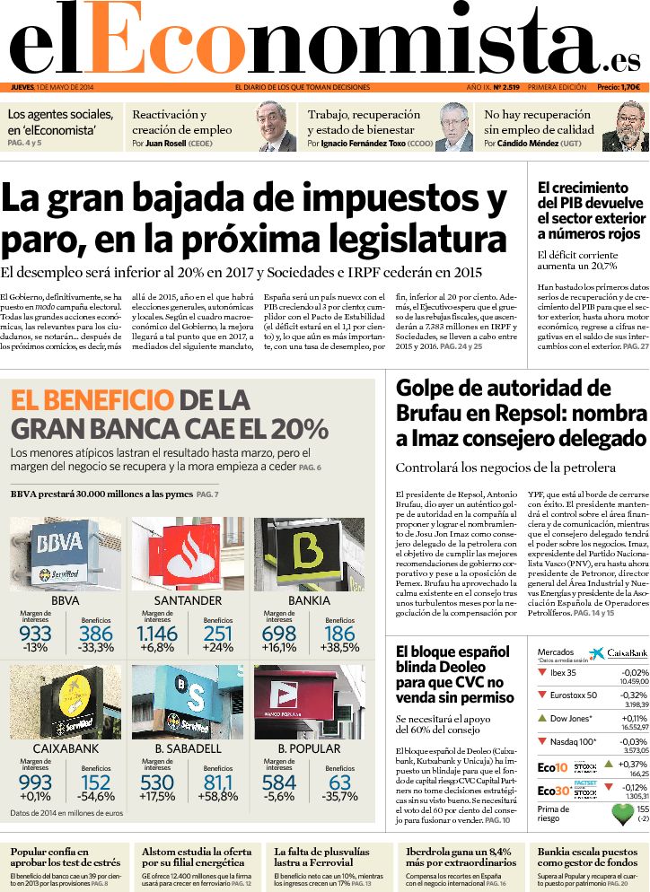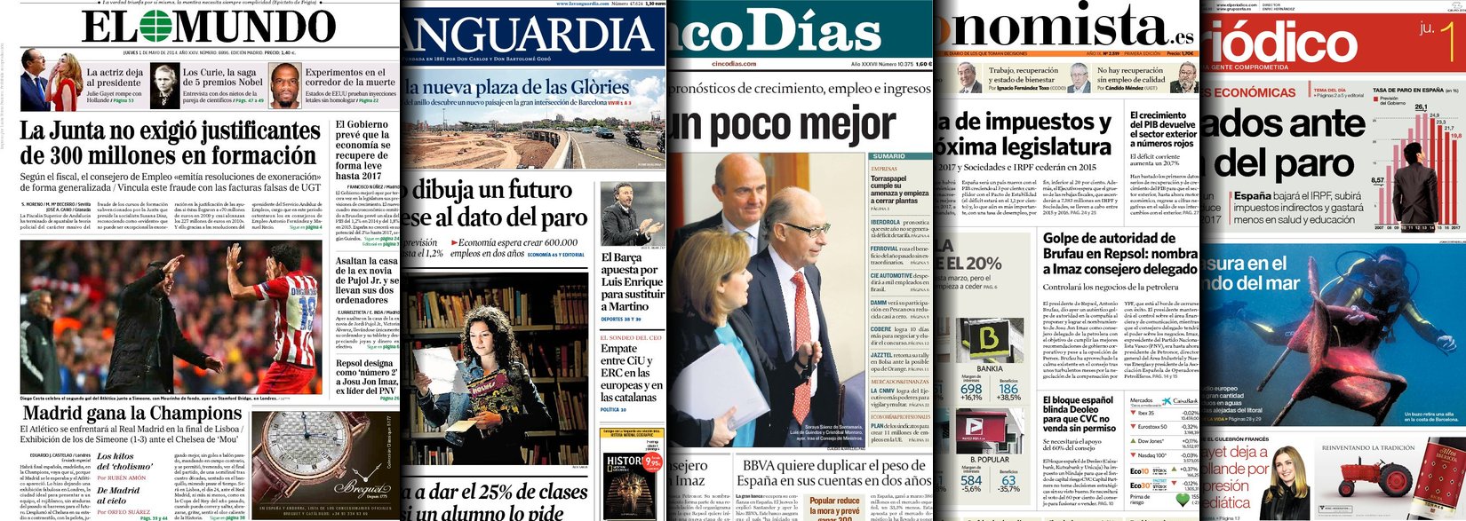 Portadas de los diarios ABC, Cinco Días, El Periódico, El Economista y La Vanguardia.