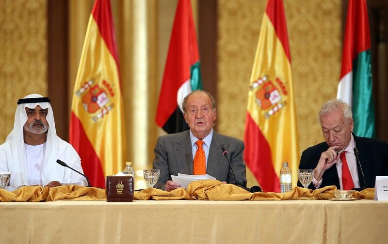 El Rey dio por finiquitada la crisis en su viaje a Emiratos Árabes en un discurso que leyó en inglés.