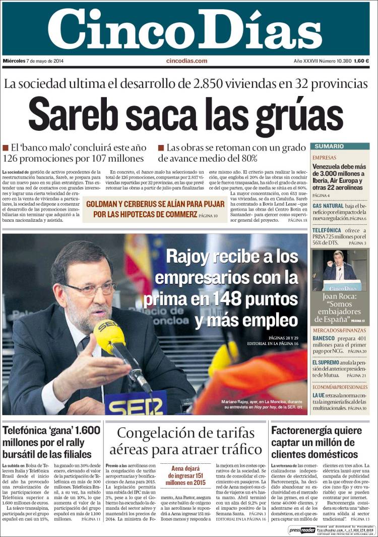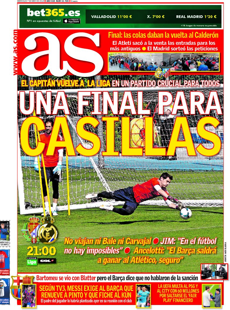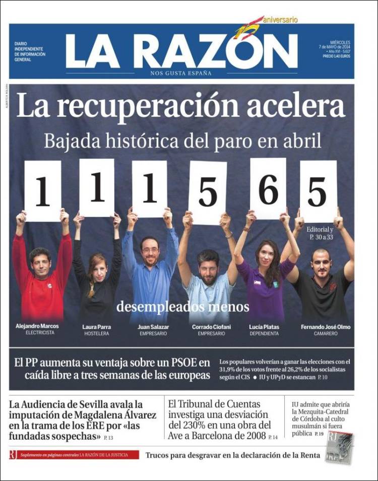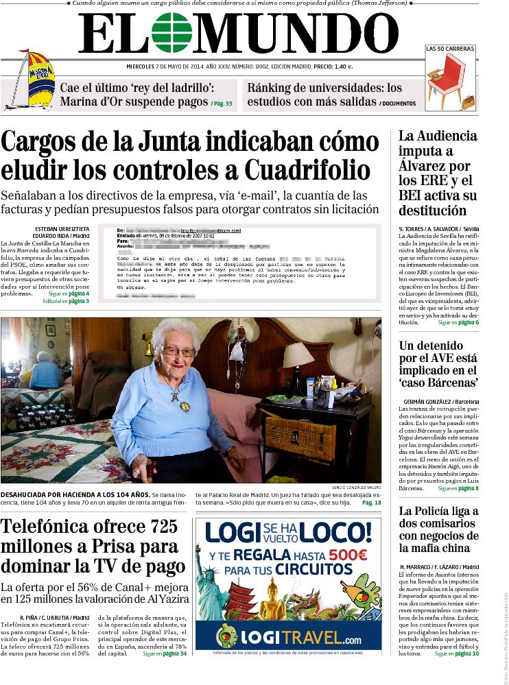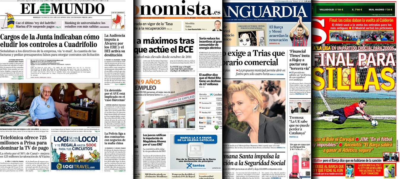 Portadas de los diarios El Mundo, El País, ABC, La Razón, La Vanguardia, El Periódico, Cinco Días, El Economista, Expansión, Marca, As, Mundo Deportivo y Sport.