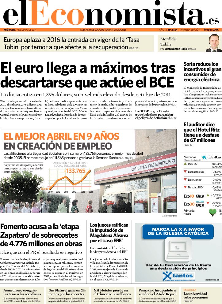 "El euro llega a máximos tras descartarse que actúr el BCE"