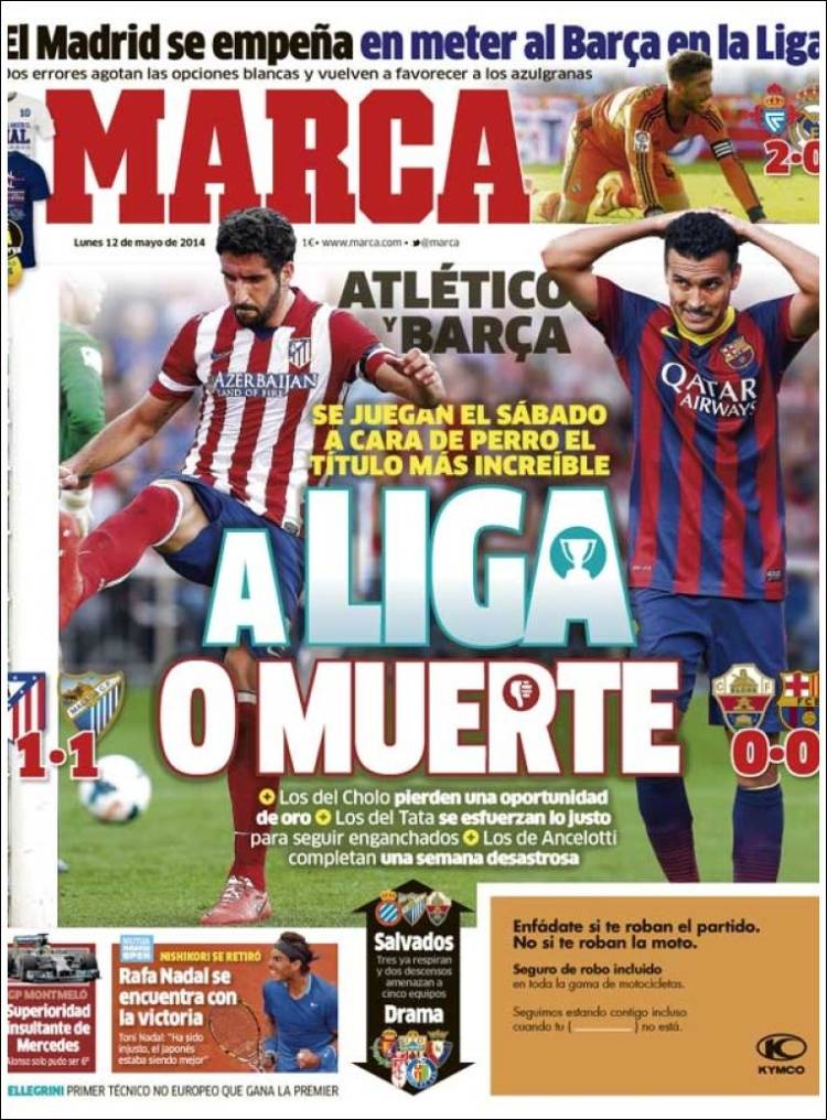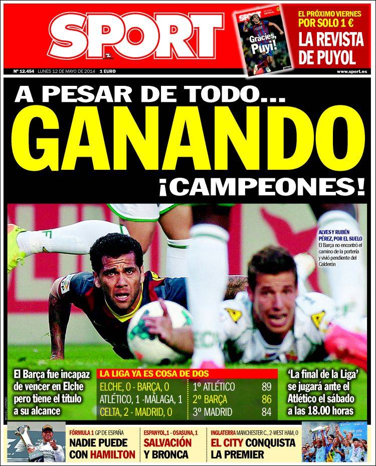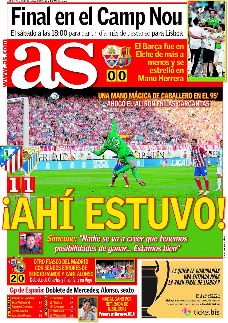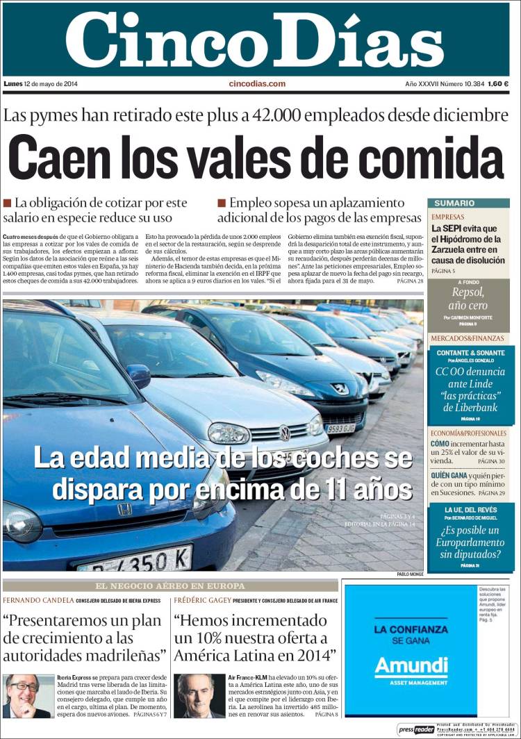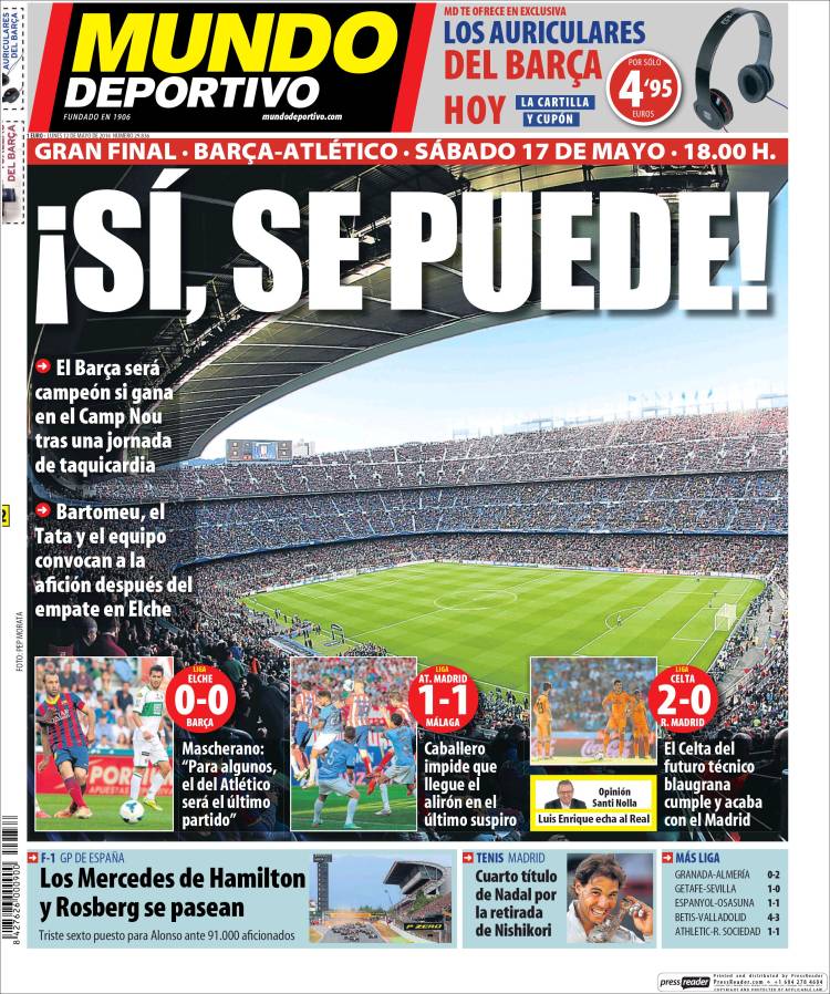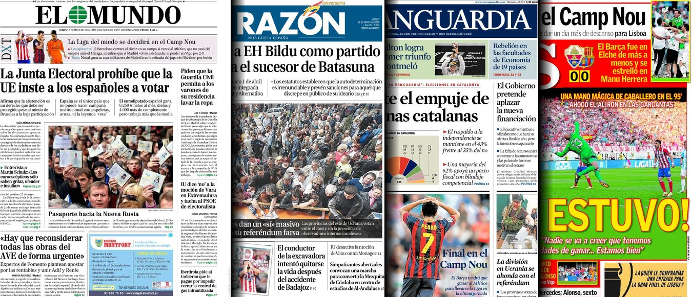 Portadas de los diarios El Mundo, El País, ABC, La Razón, La Vanguardia, Cinco Días, El Economista, Expansión, Marca, As, Mundo Deportivo y Sport.