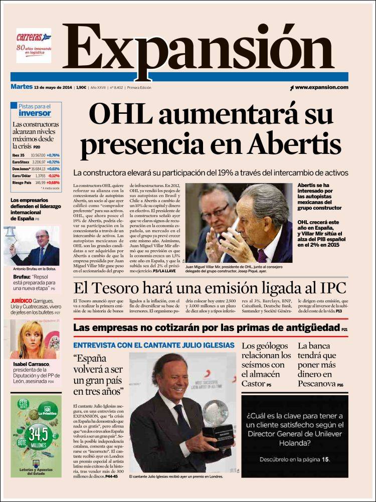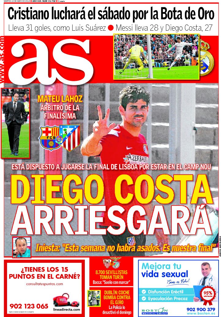 Portadas de los diarios El Mundo, El País, ABC, La Razón, La Vanguardia, El Periódico, Cinco Días, El Economista, Expansión, Marca, As, Mundo Deportivo y Sport.