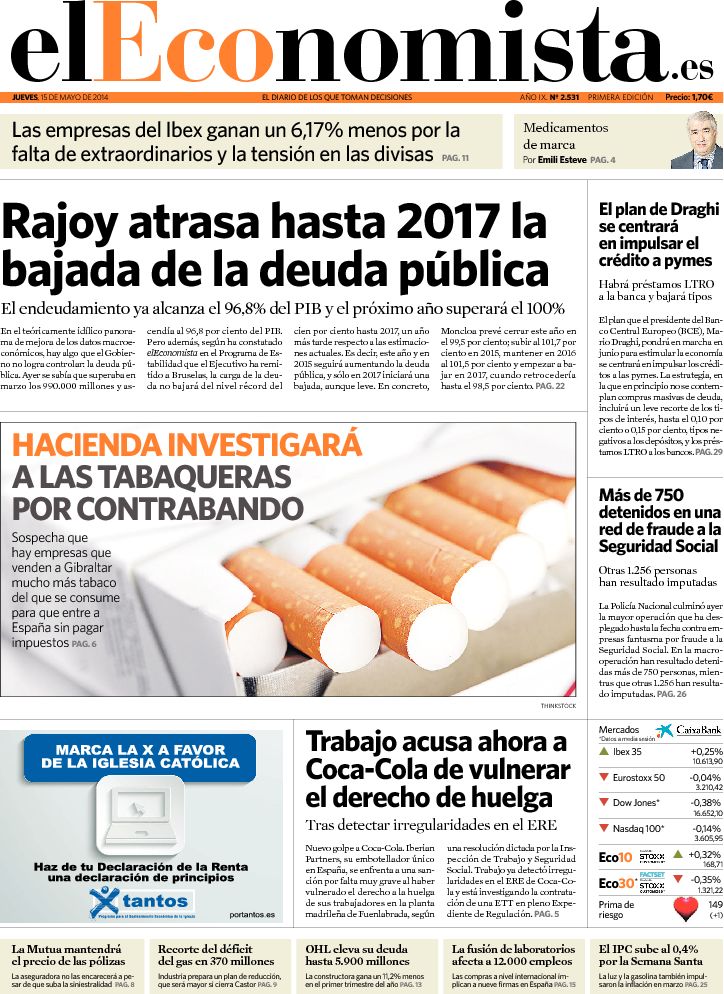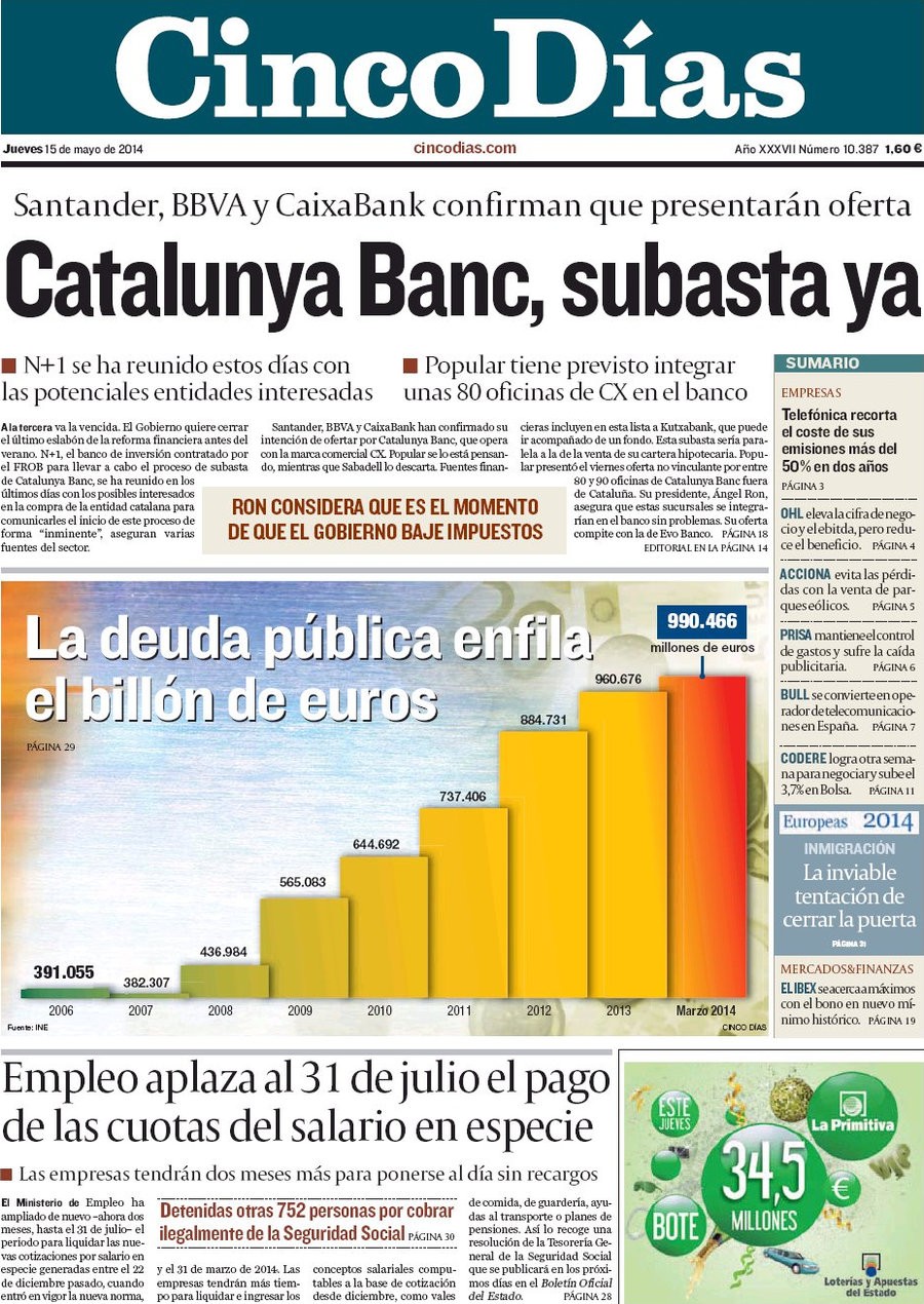 "Rajoy atrasa hasta 2017 la bajada de la deuda pública"