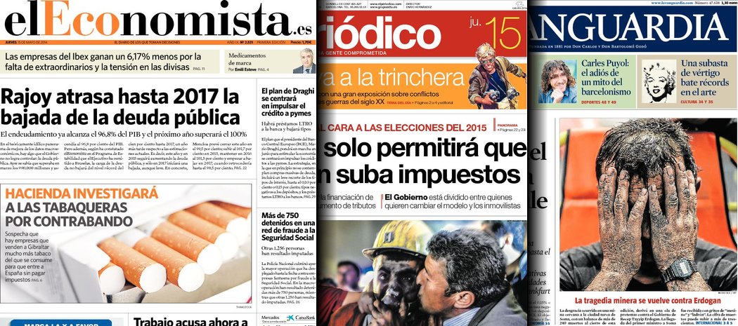 Portadas de los diarios ABC, El Periódico, El Economista y La Vanguardia.