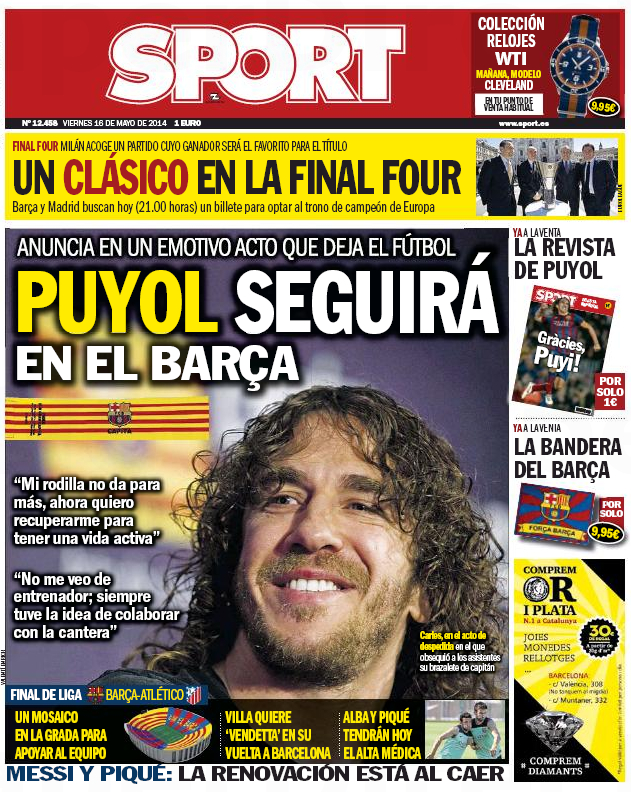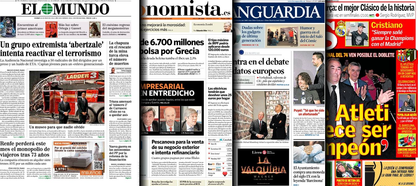 Portadas de los diarios El Mundo, El País, ABC, La Razón, La Vanguardia, El Periódico, Cinco Días, El Economista, As, Mundo Deportivo y Sport.