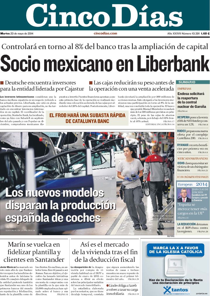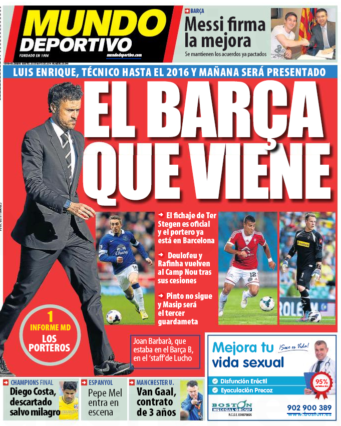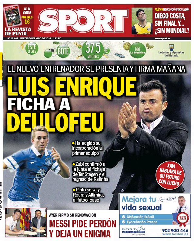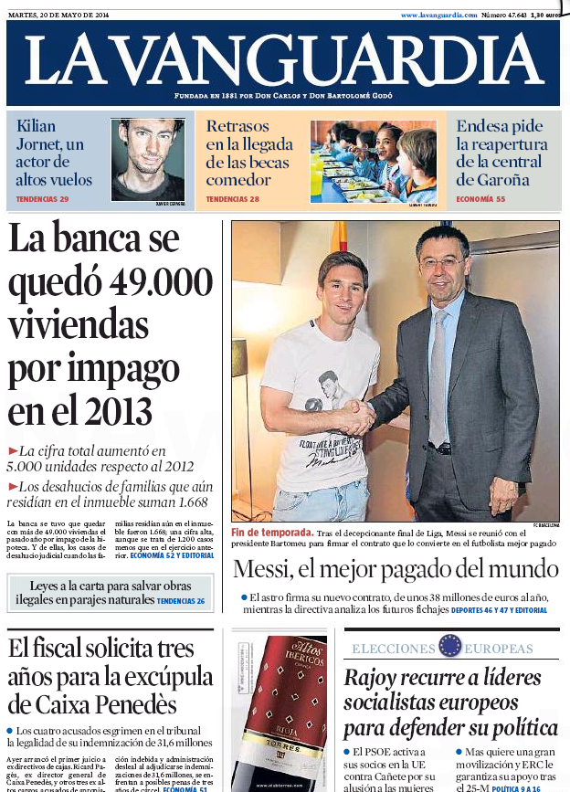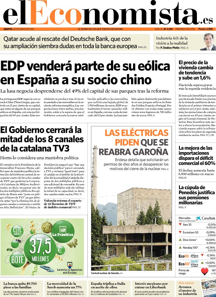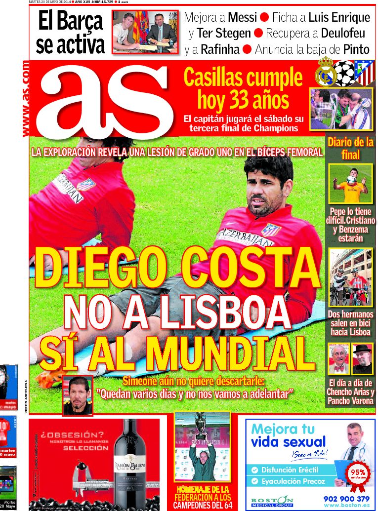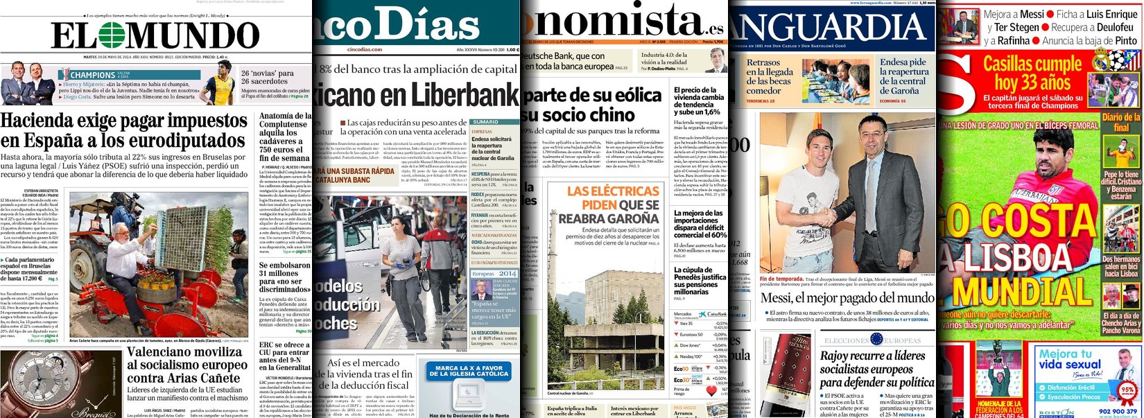 Portadas de los diarios El Mundo, El País, ABC, La Razón, La Vanguardia, El Periódico, Cinco Días, El Economista, Expansión, Marca, As, Mundo Deportivo y Sport.