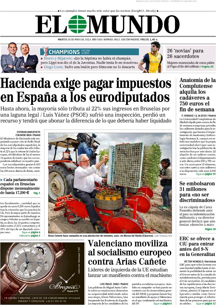 "Hacienda exige pagar impuestos en España a los eurodiputados"