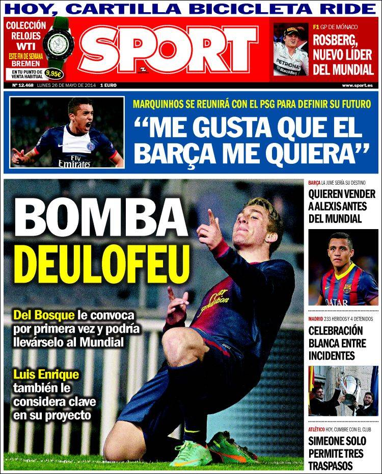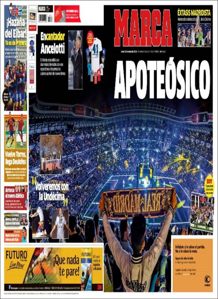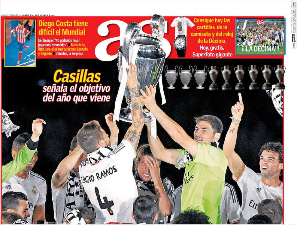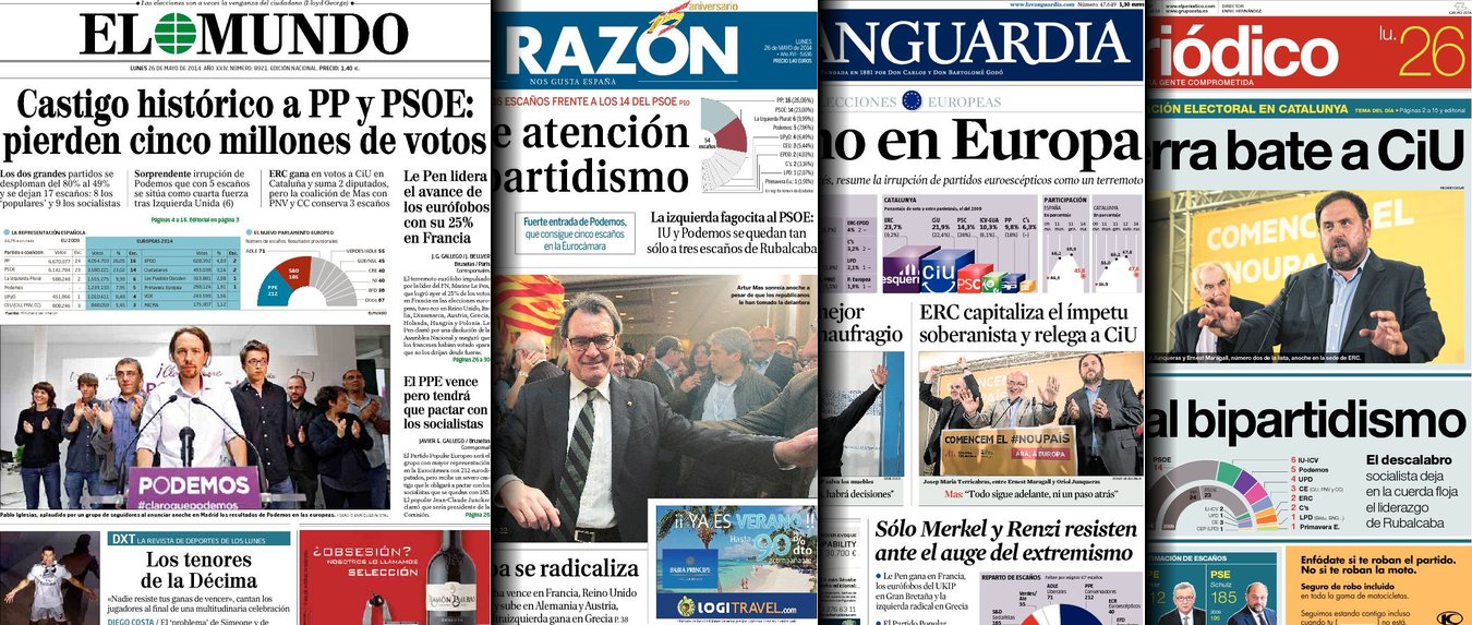 Portadas de los diarios El Mundo, El País, ABC, La Razón, La Vanguardia, El Periódico, Cinco Días, El Economista, Expansión, Marca, As, Mundo Deportivo y Sport.