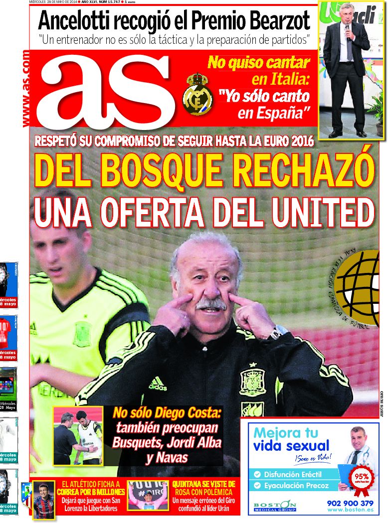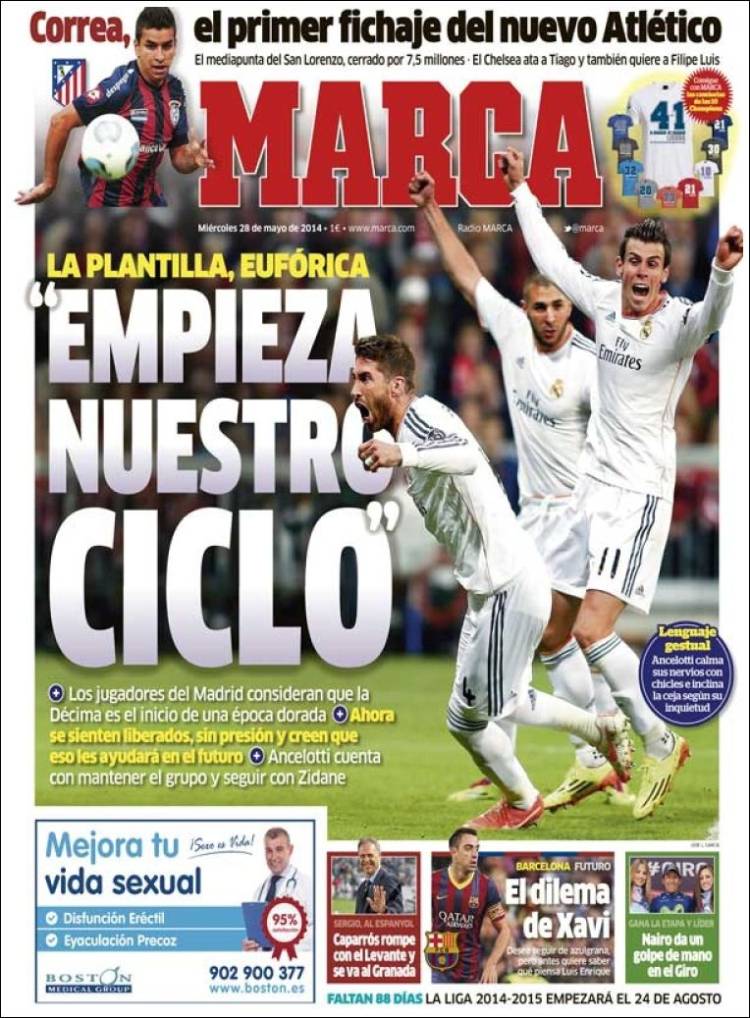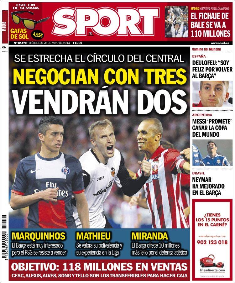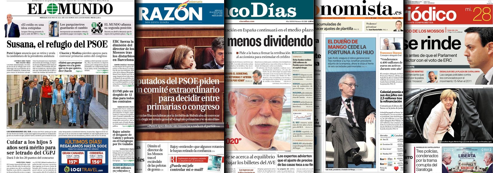 Portadas de los diarios El Mundo, El País, ABC, La Razón, La Vanguardia, El Periódico, Cinco Días, El Economista, Expansión, Marca, As, Mundo Deportivo y Sport.