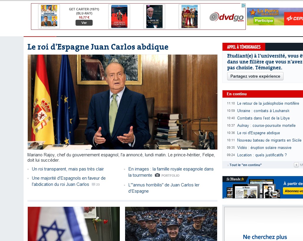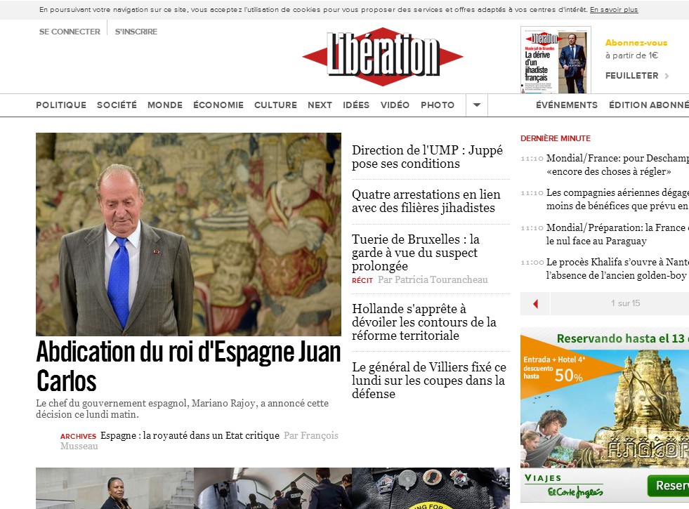 El diario francés es, una hora después del anuncio de Rajoy, el único que incluye a los príncipes en la información de la abdicación.
