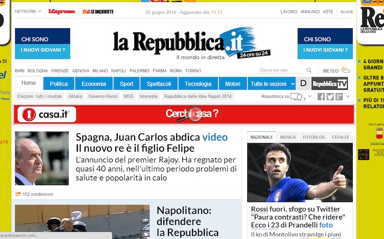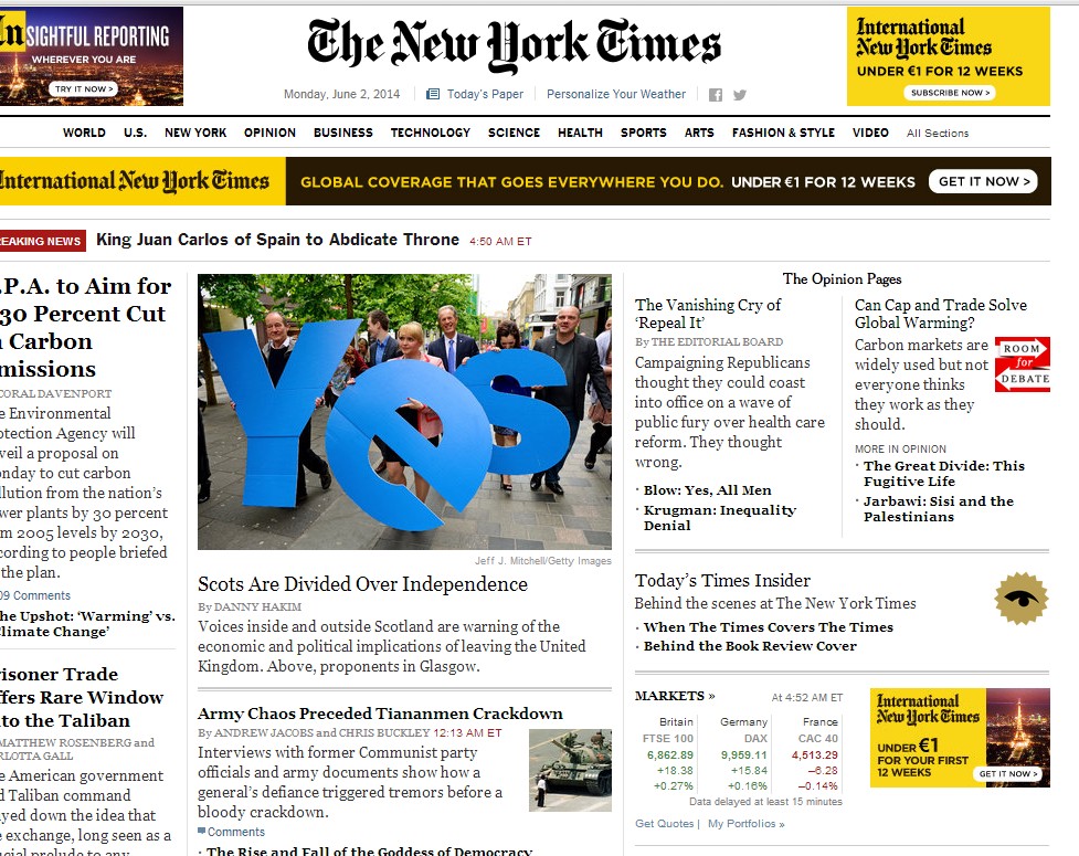 La prensa europea ocupa sus cabeceras con la abdicación del Rey. La estadounidense reduce el espacio y, en alguna ocasión, lo reduce a un cintillo.