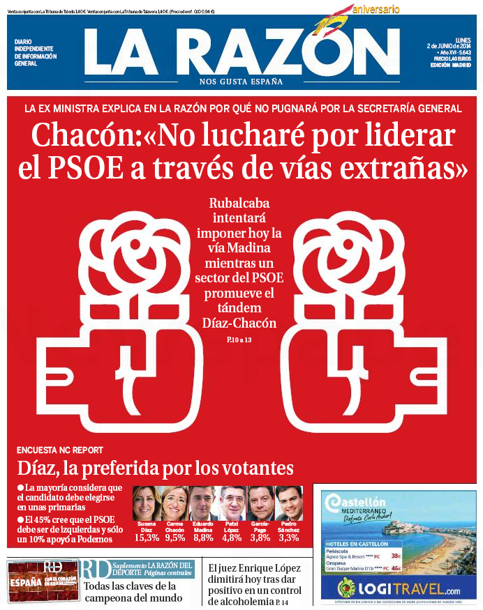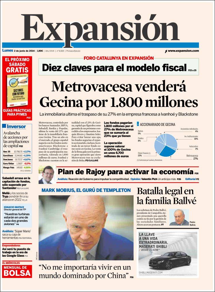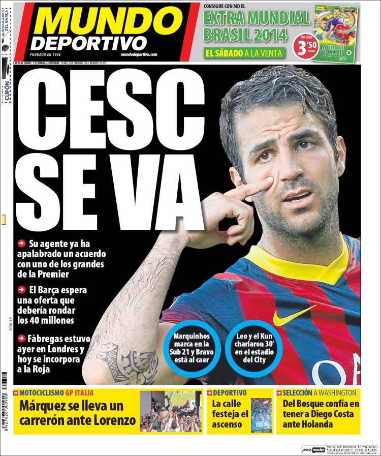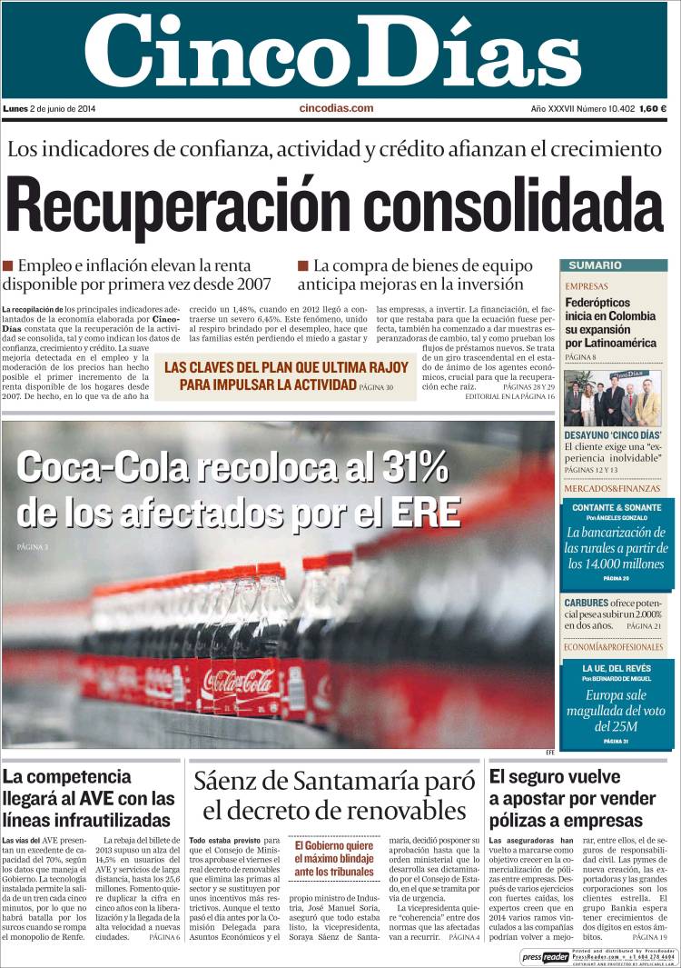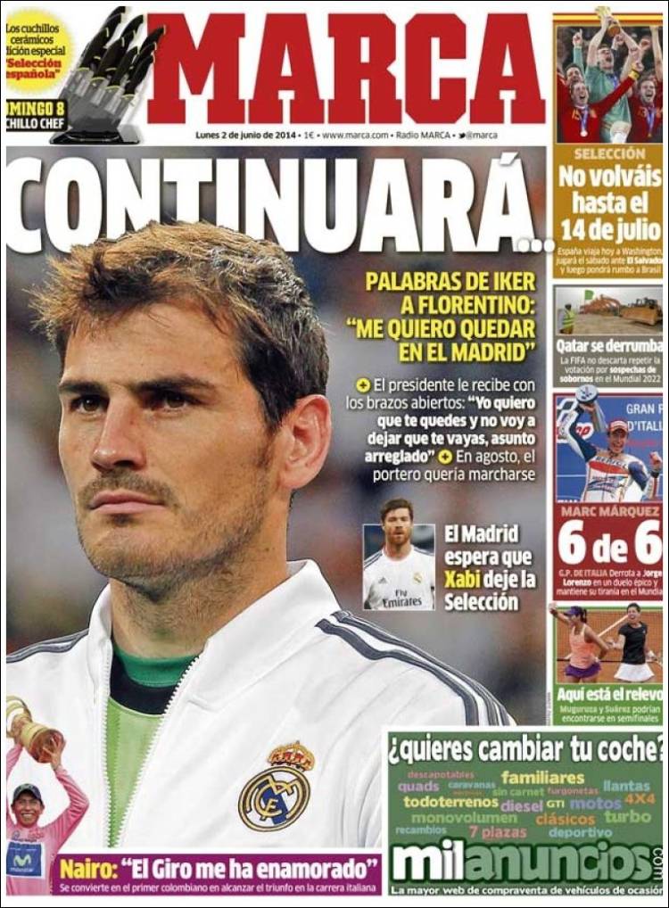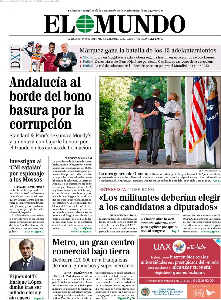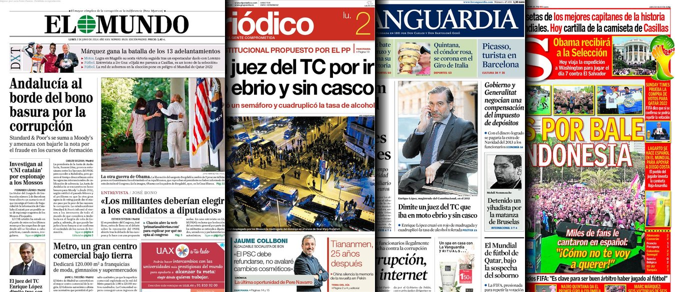 Portadas de los diarios El Mundo, El País, ABC, La Razón, La Vanguardia, El Periódico, Cinco Días, El Economista, Expansión, Marca, As, Mundo Deportivo y Sport.