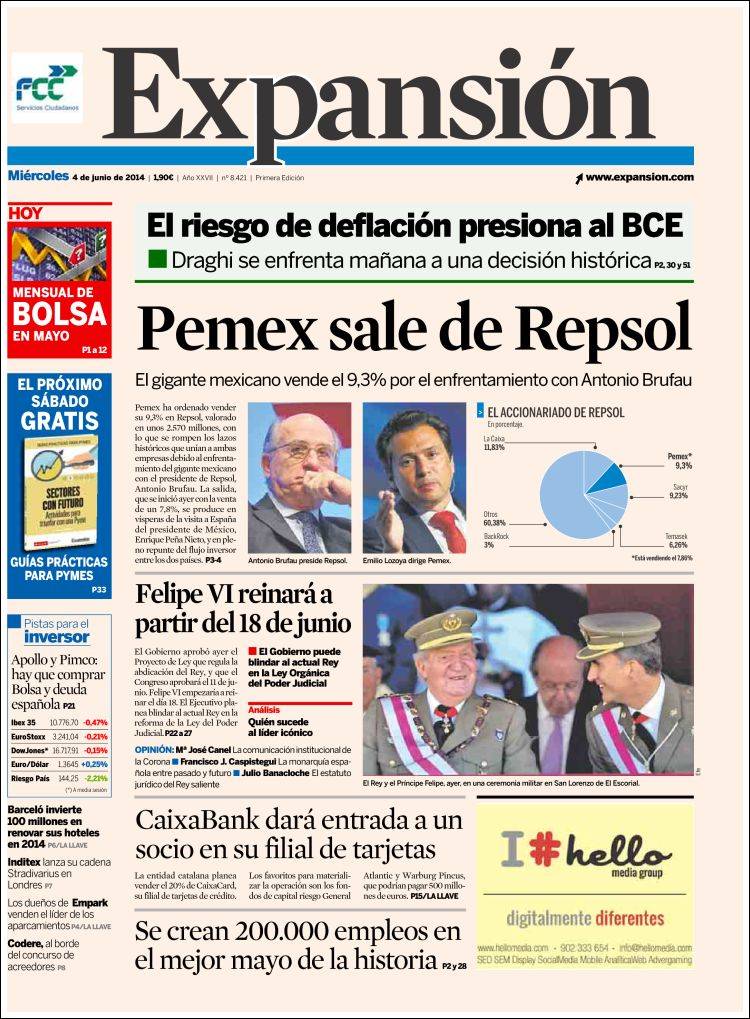 "Pemex tira la toalla en Repsol y da a Brufau el control absoluto"